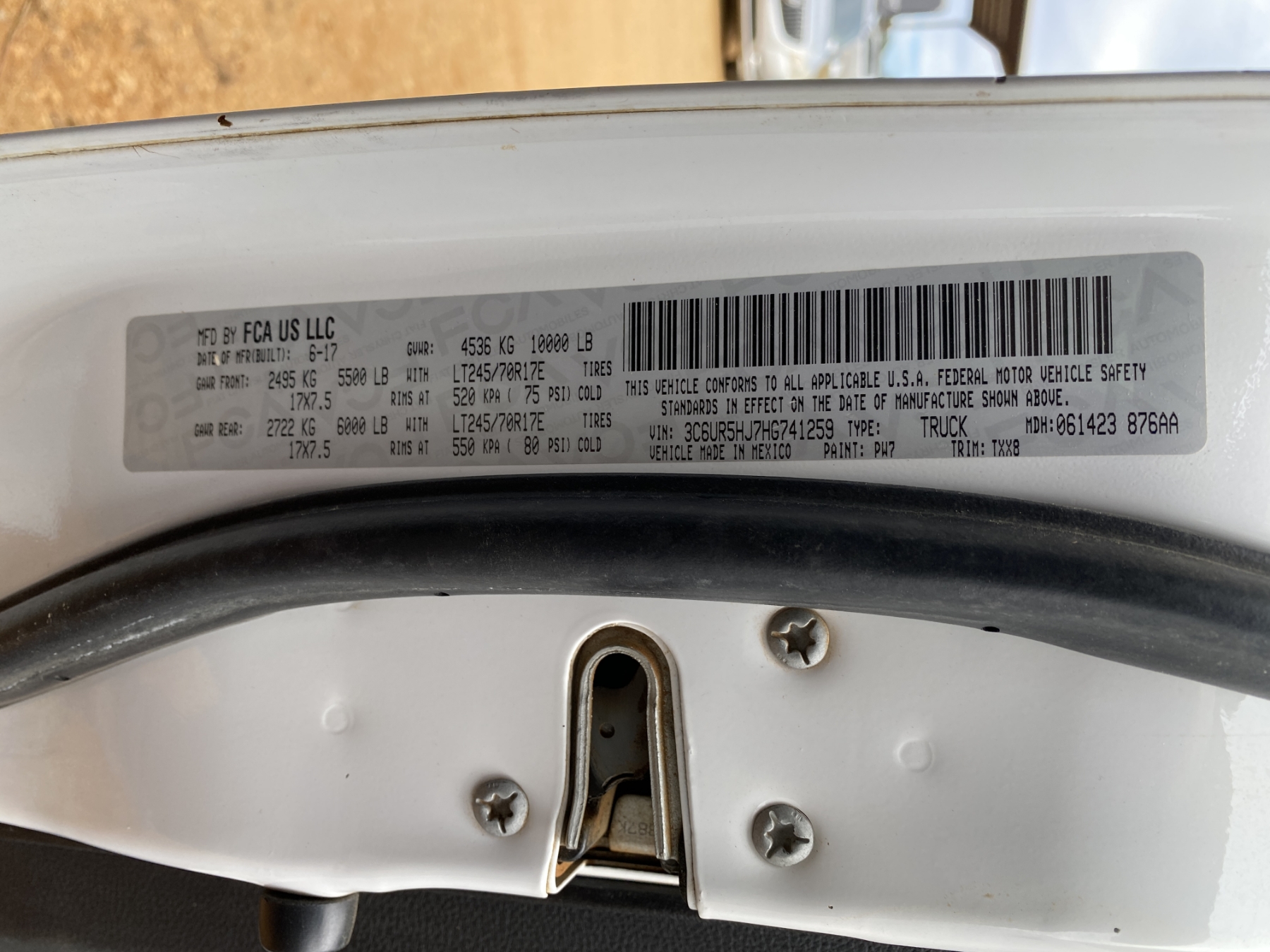 Vehicle ID Number: 3C6UR5HJ7HG741259