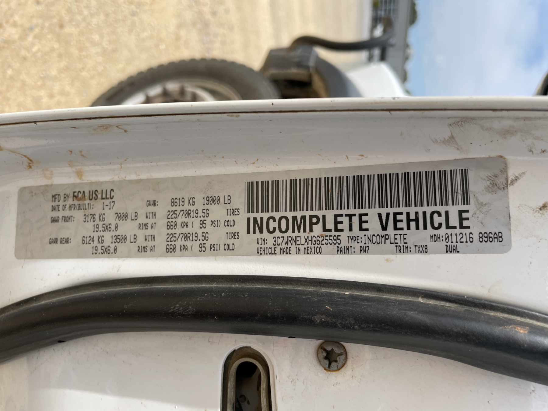 Vehicle ID Number: 3C7WRNELXHG625595