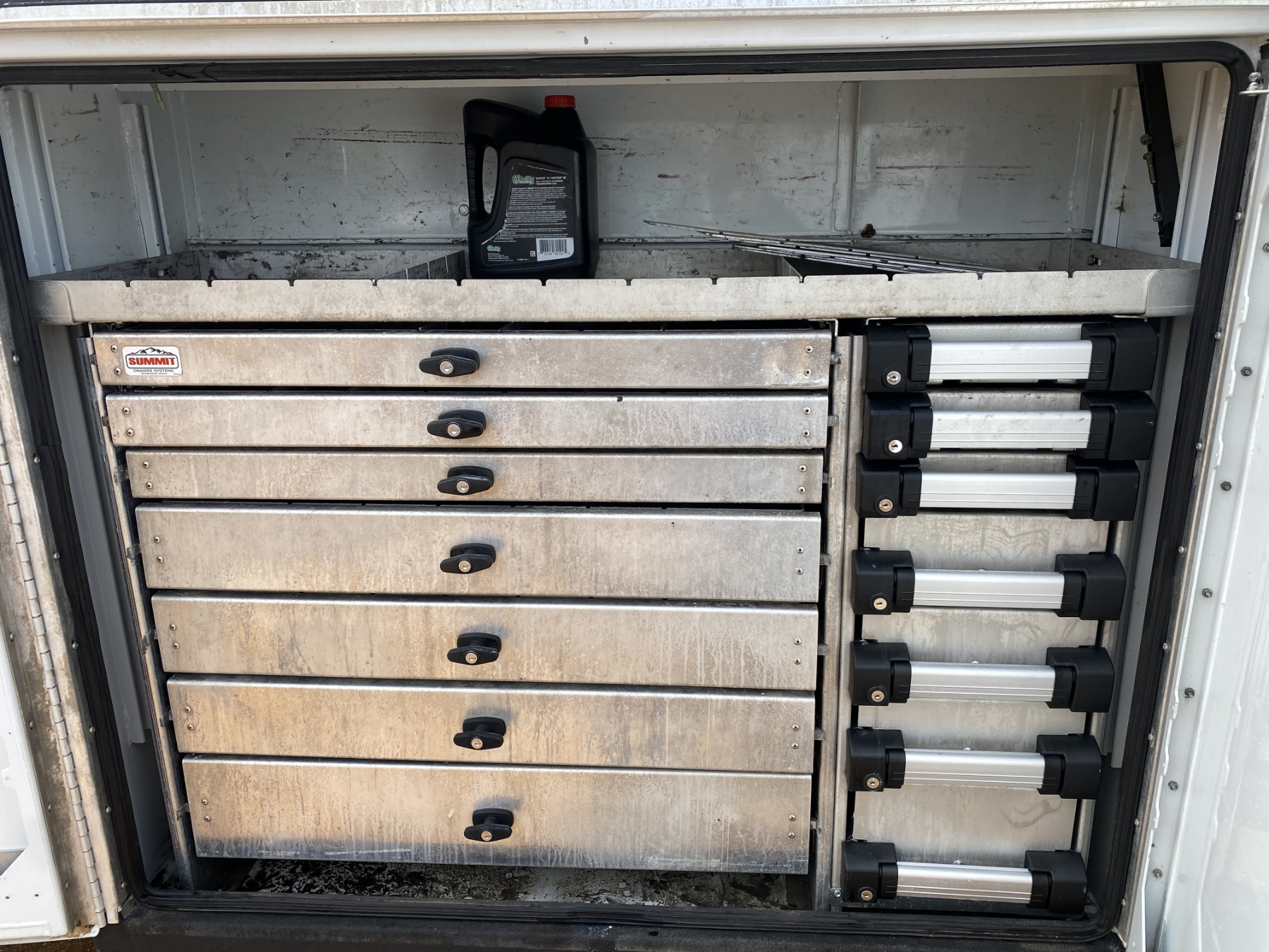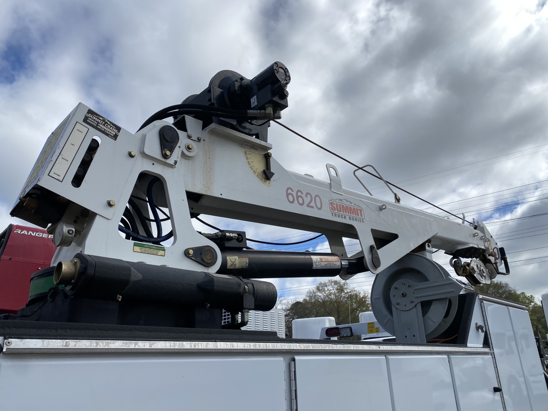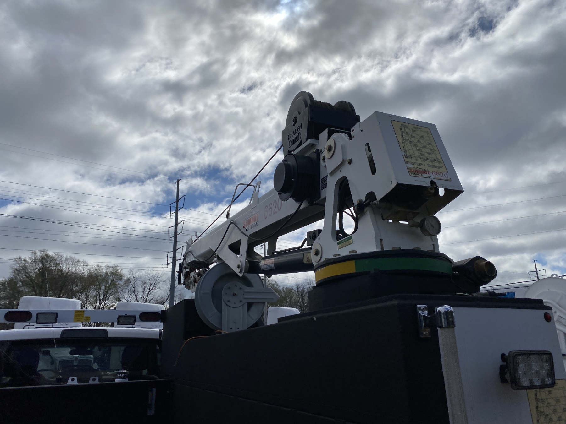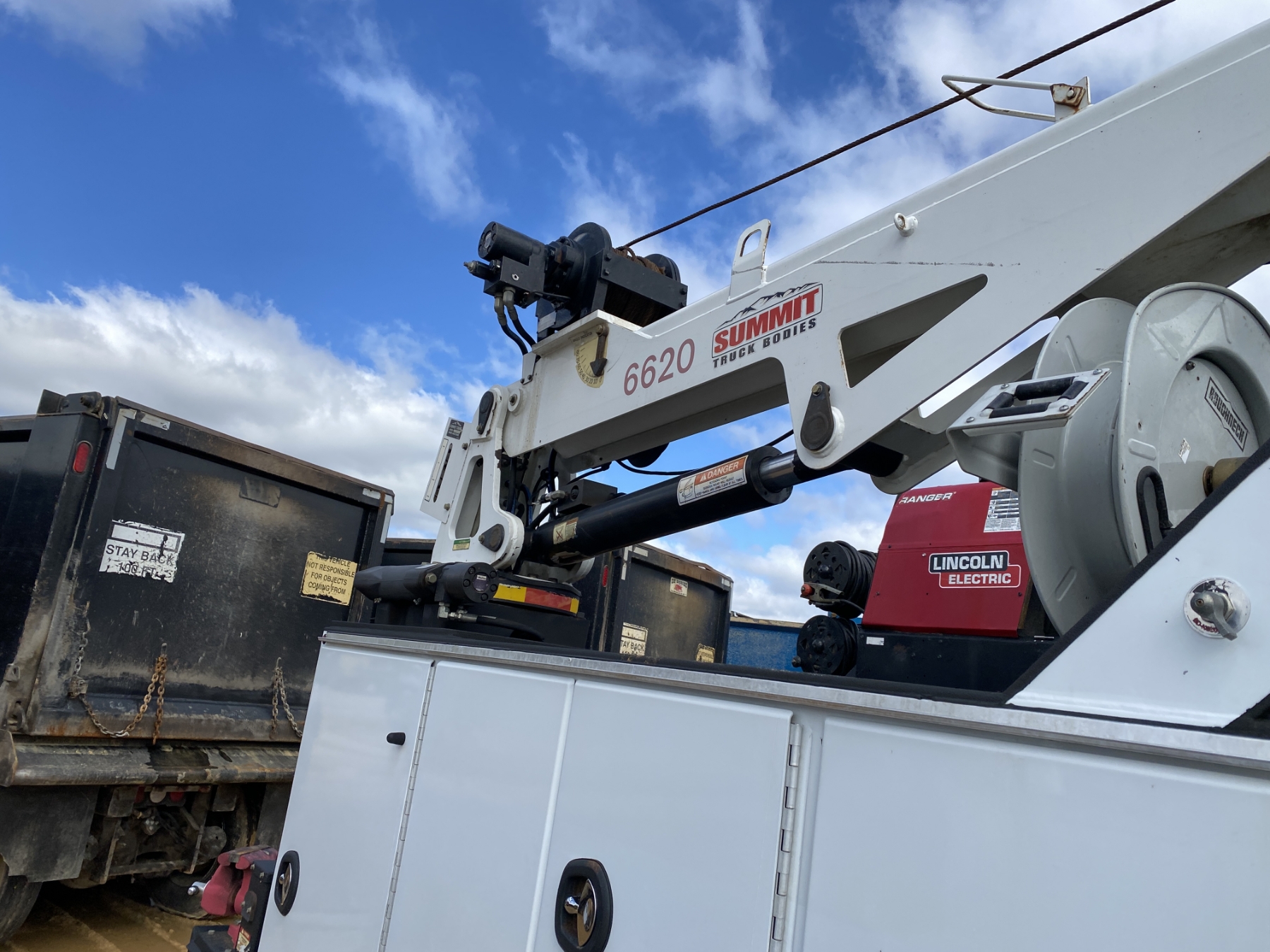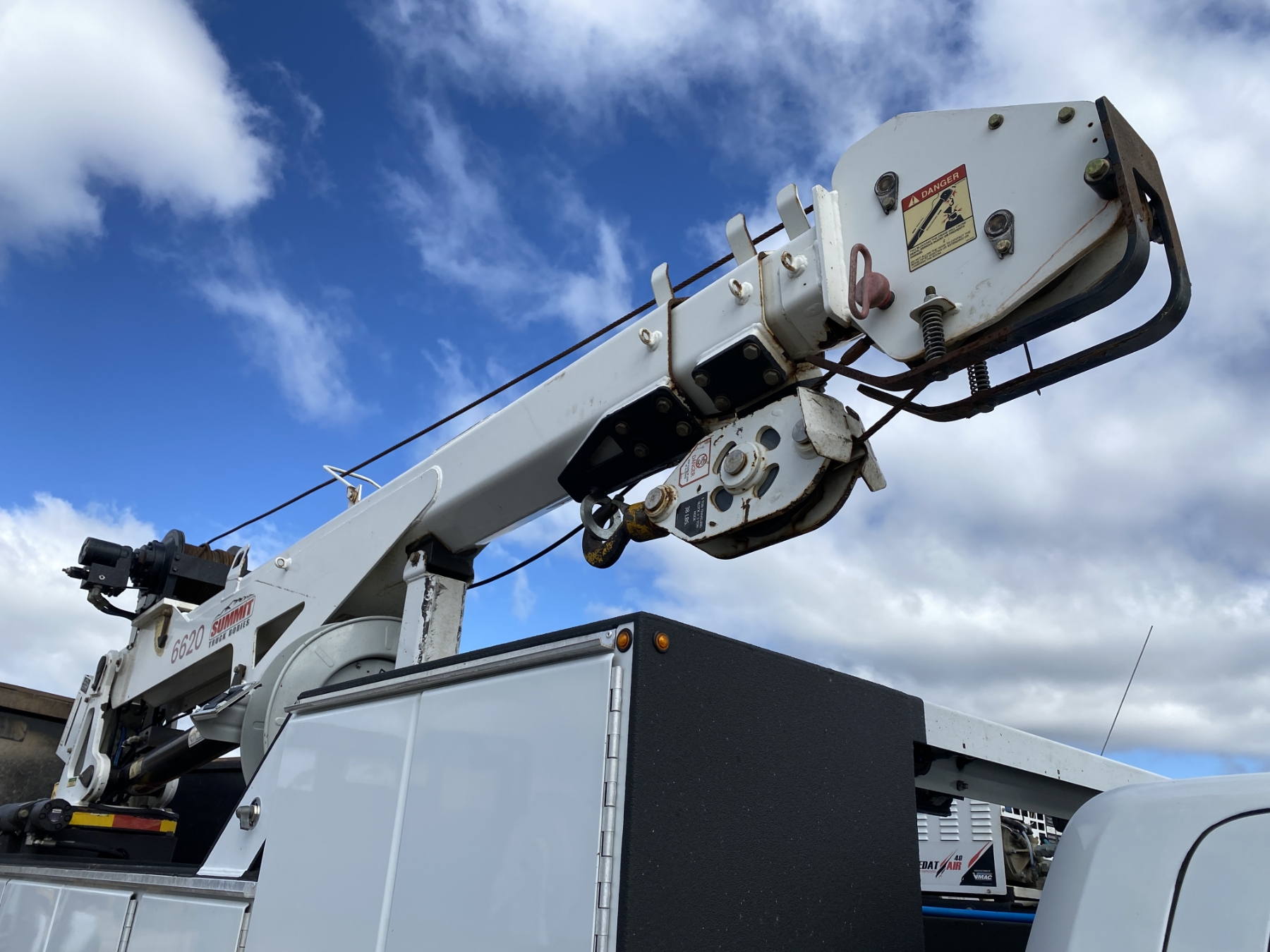4x4, dually, Cummins engine, Allison A/T, Summit body, Summit 6620 crane, hyd air compressor, Lincoln Ranger 250 welder, workbench bumper w/ vise