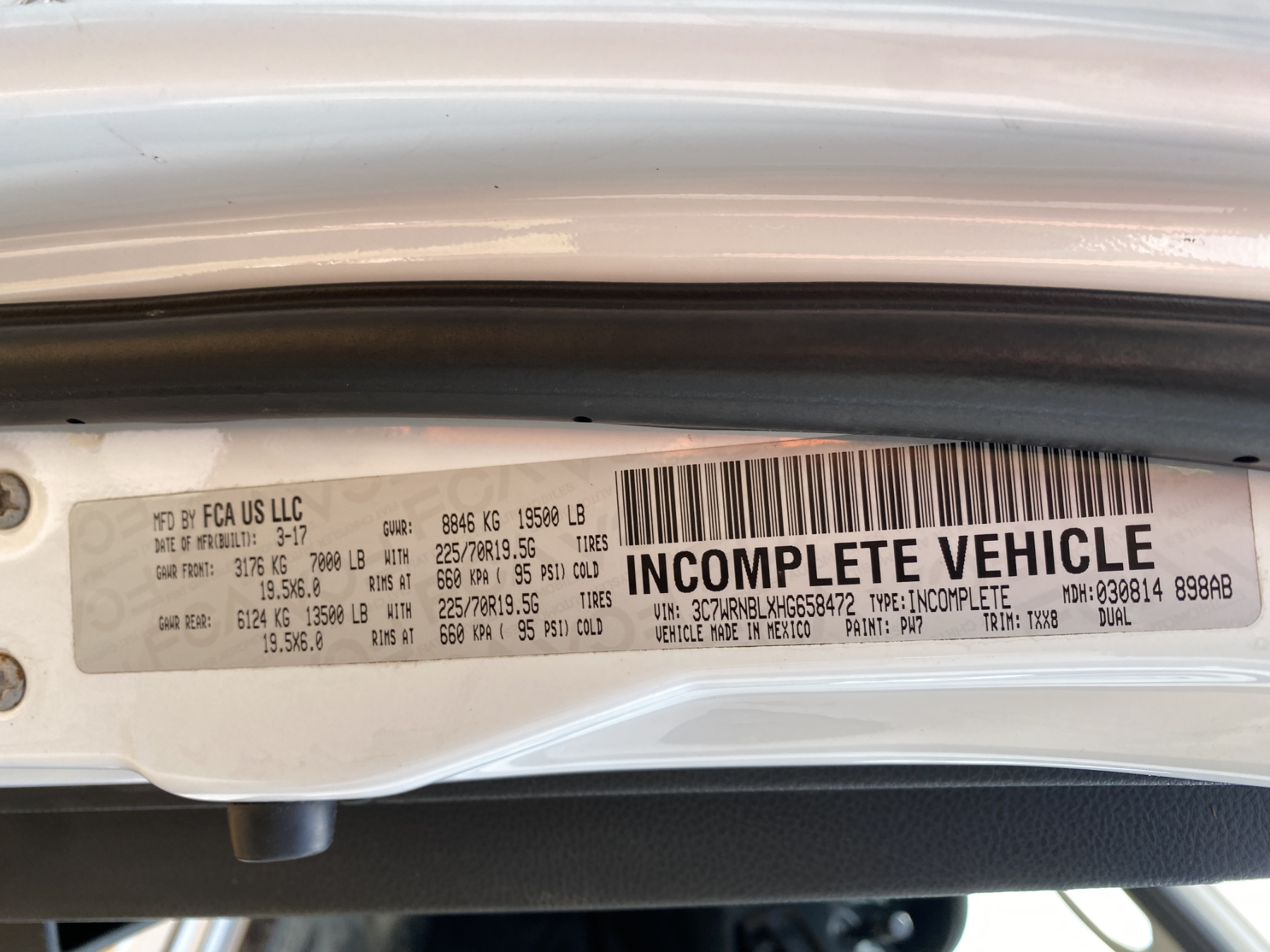 Vehicle ID Number: 3C7WRNBLXHG658472