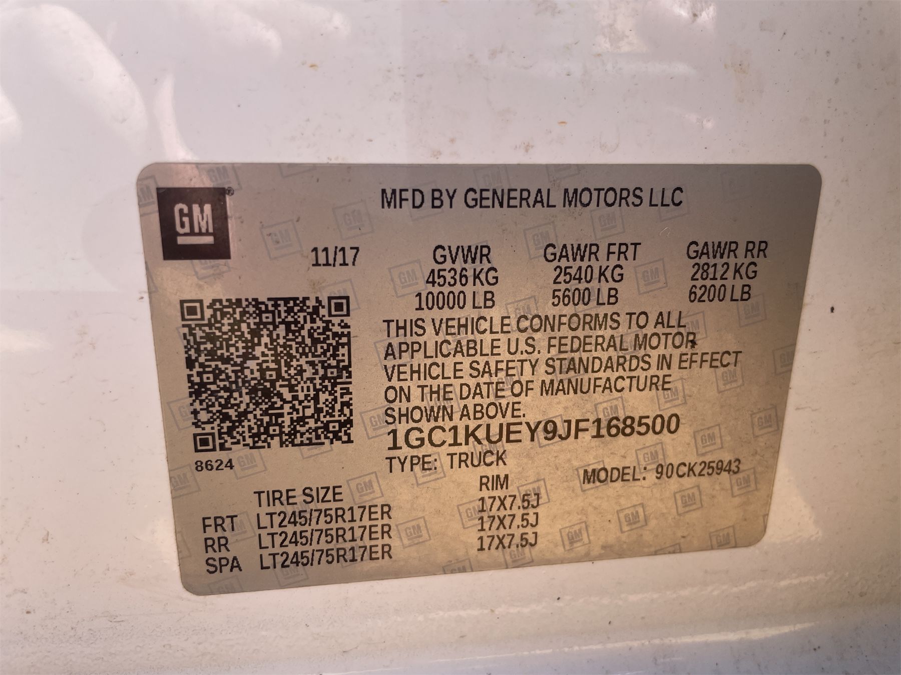 Vehicle ID Number: 1GC1KUEY9JF168500