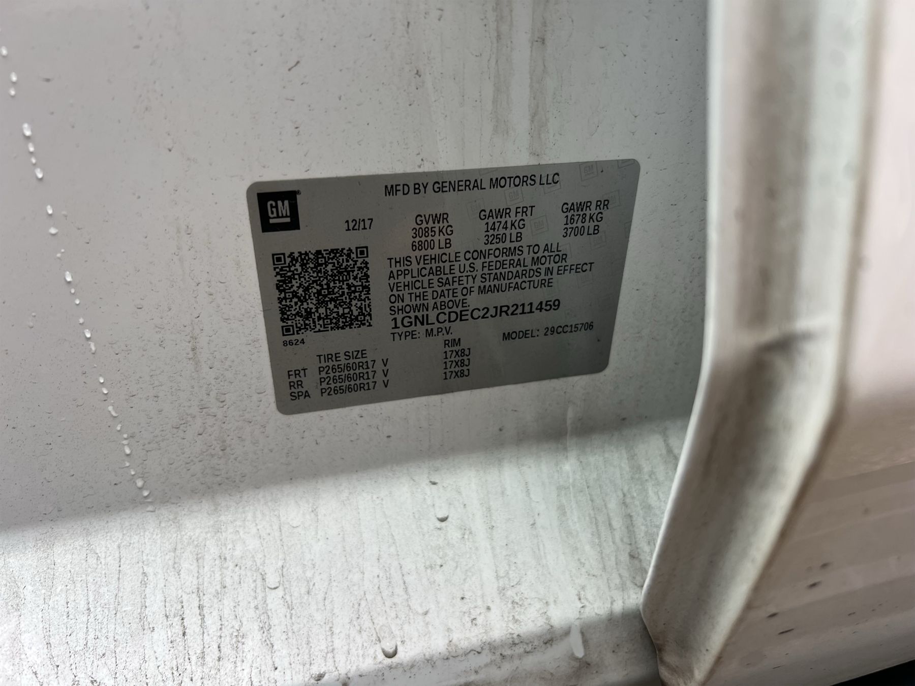Vehicle ID Number: 1GNLCDEC2JR211459