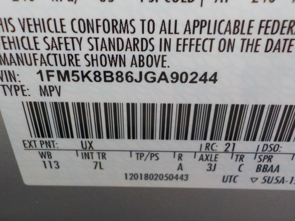 Vehicle ID Number: 1FM5K8B86JGA90244