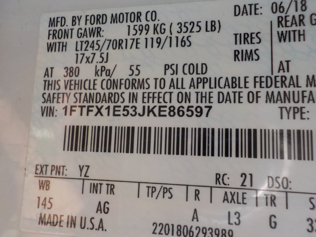 Vehicle ID Number: 1FTFX1E53JKE86597