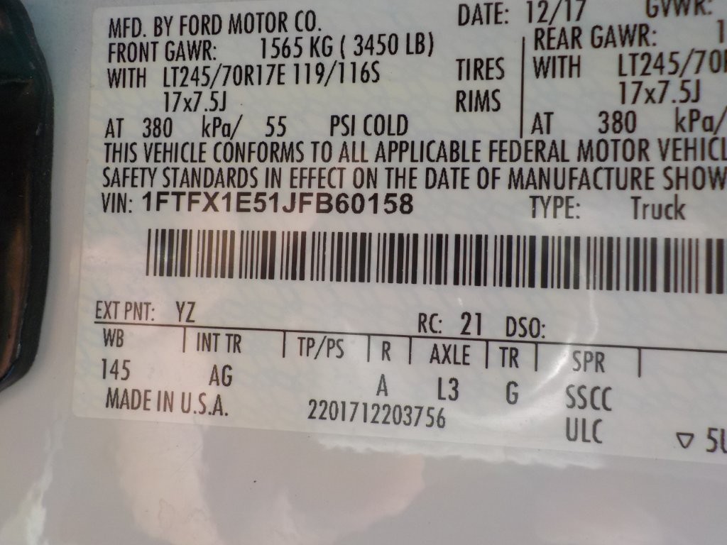 Vehicle ID Number: 1FTFX1E51JFB60158