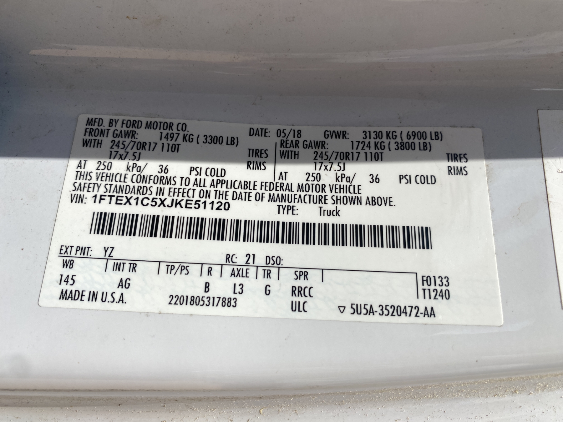 Vehicle ID Number: 1FTEX1C5XJKE51120