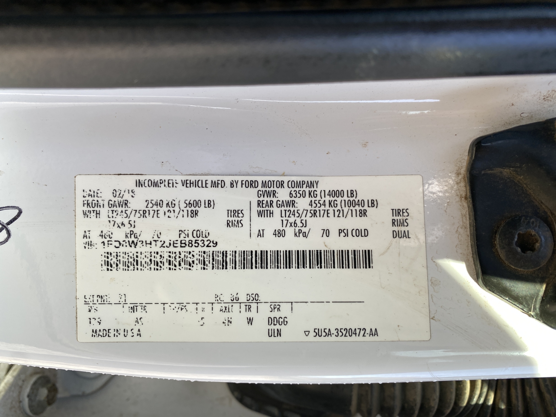 Vehicle ID Number: 1FD8W3HT2JEB85329