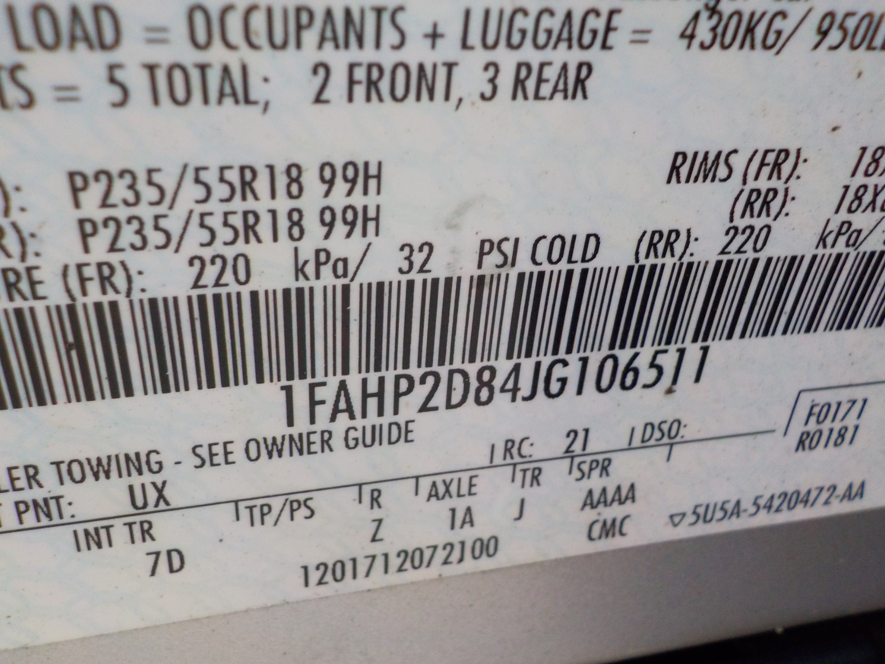 Vehicle ID Number: 1FAHP2D84JG106511