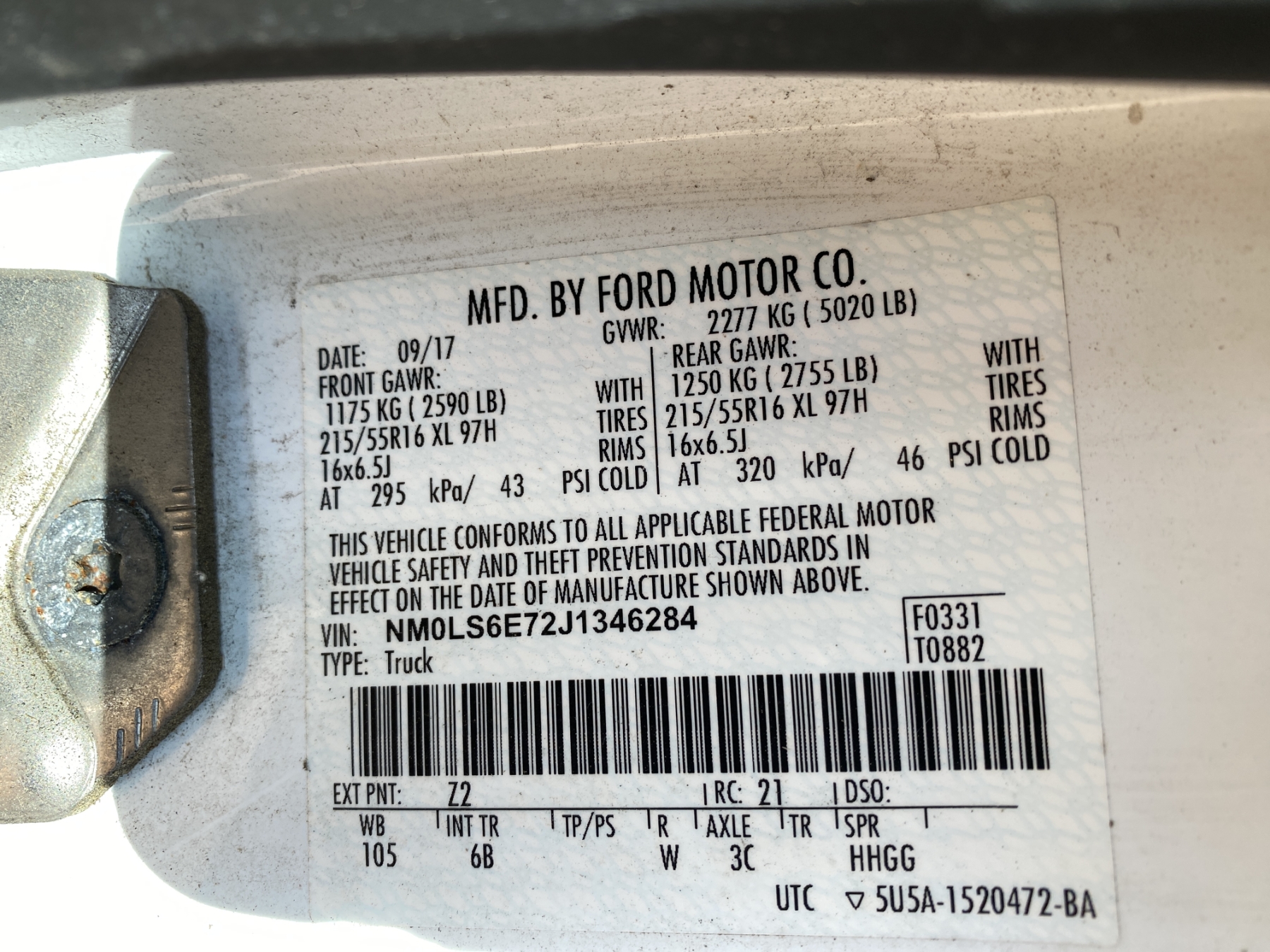 Vehicle ID Number: NM0LS6E72J1346284