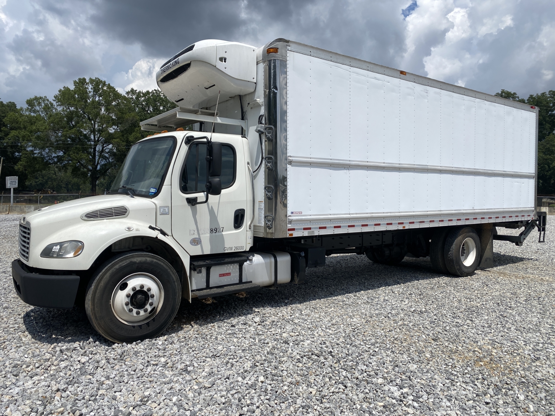 S/A, Cummins B6.7 engine, A/T, Thermo King reefer unit, 26' Morgan body, roll up door, Maxon lift gate