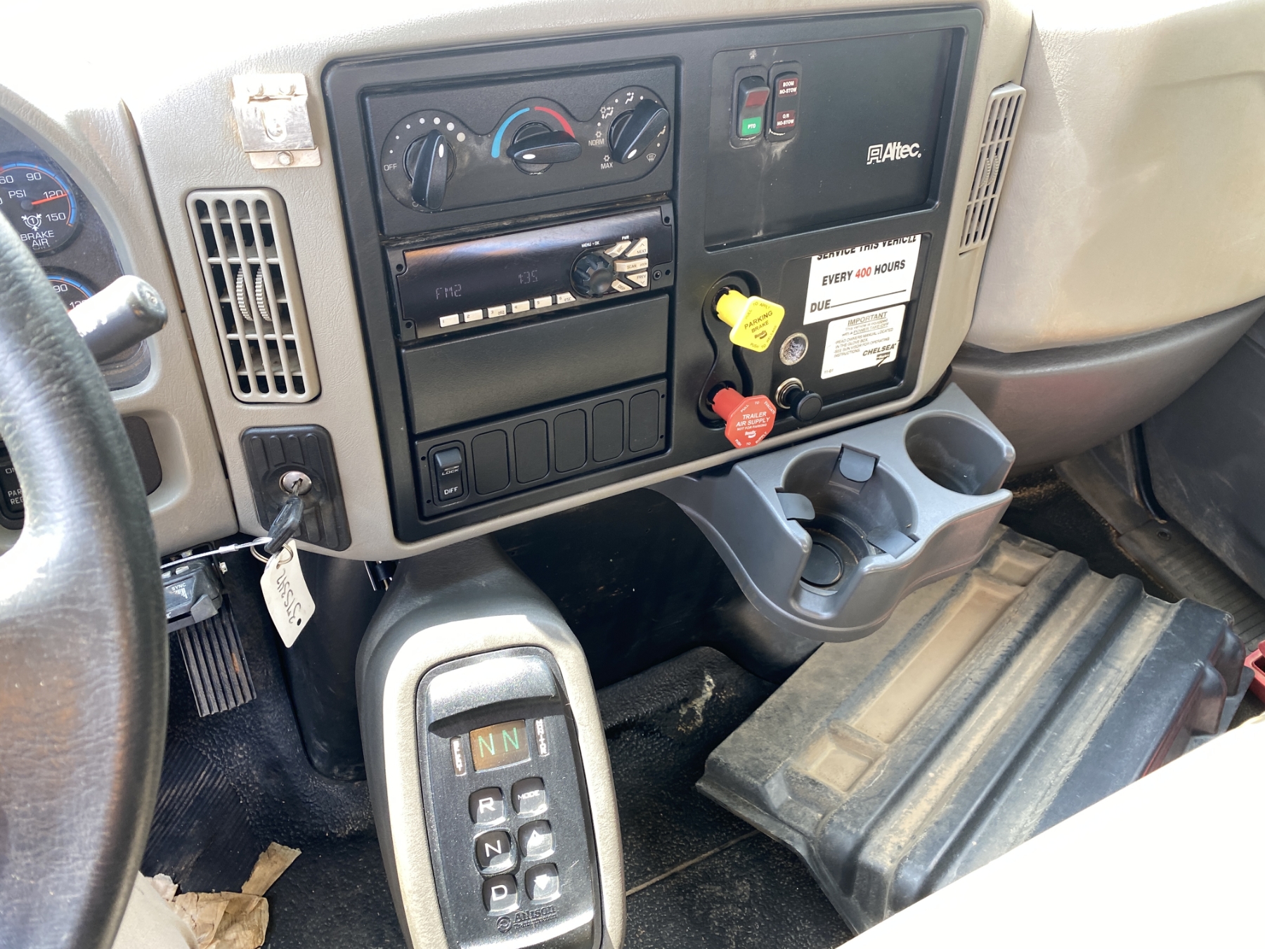 Cummins ISB engine, Allison A/T, Adkins service body, Effer 135 front mtd. knuckleboom crane, outriggers, hose reel