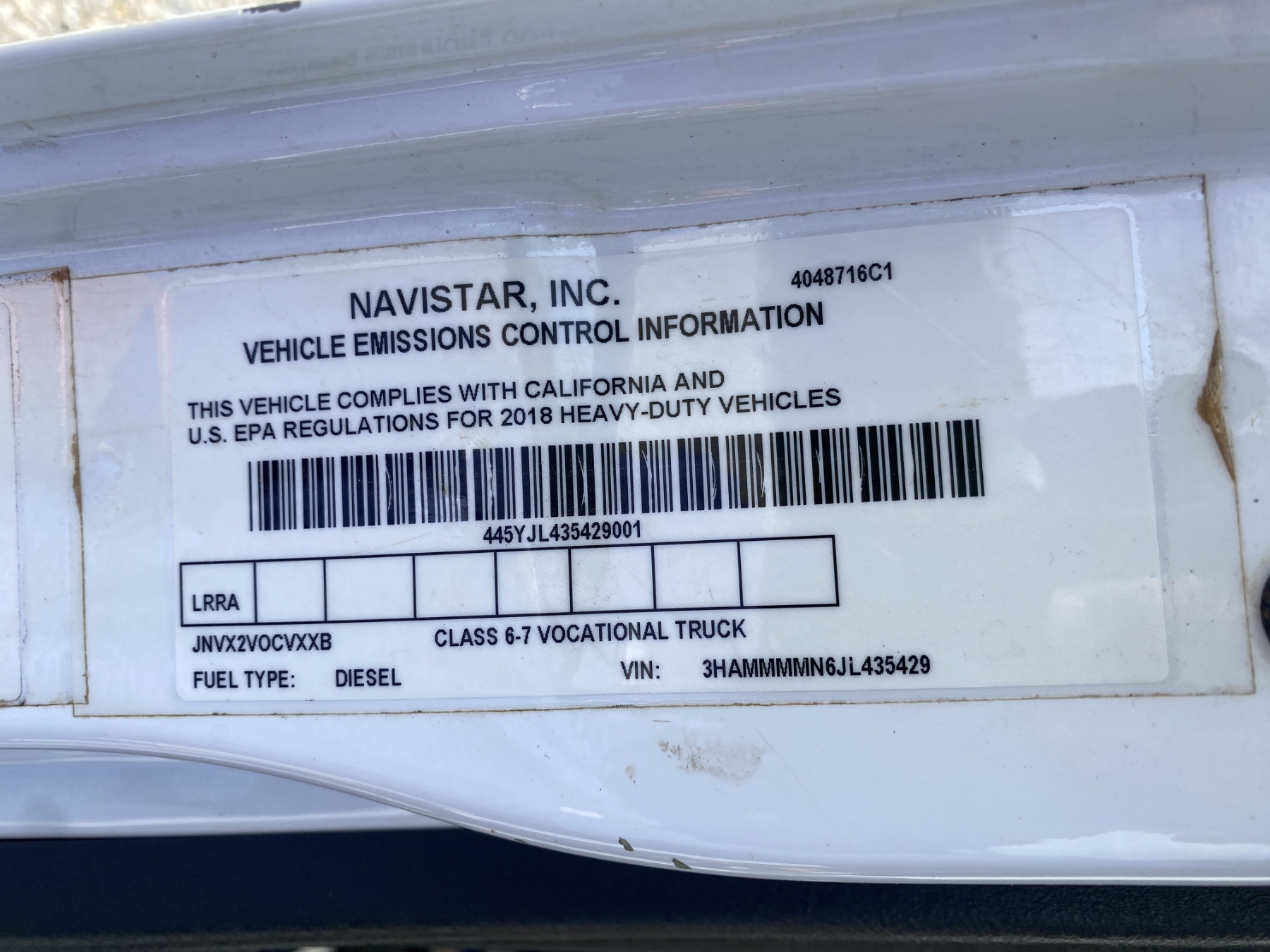 Vehicle ID Number: 3HAMMMMN6JL435429