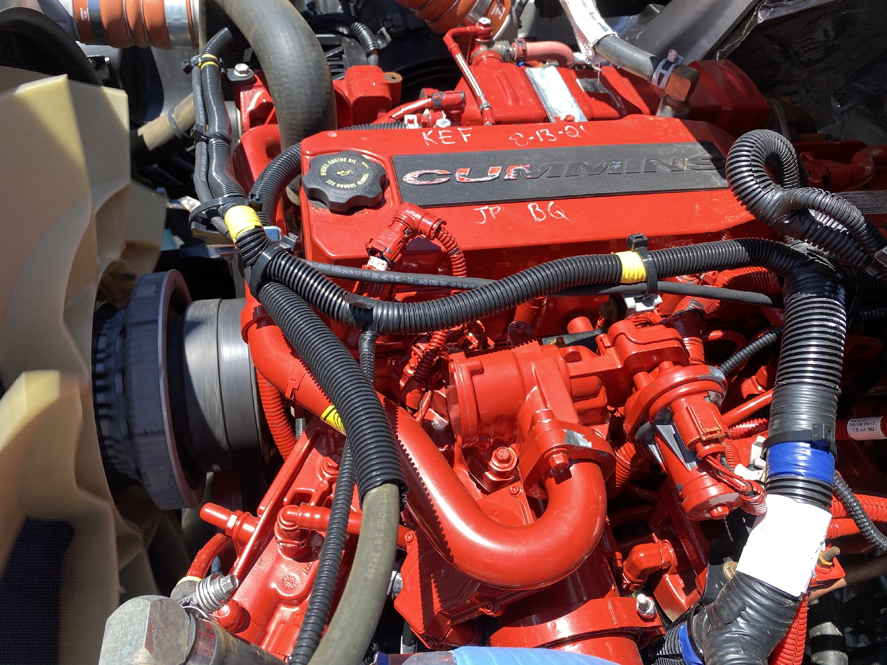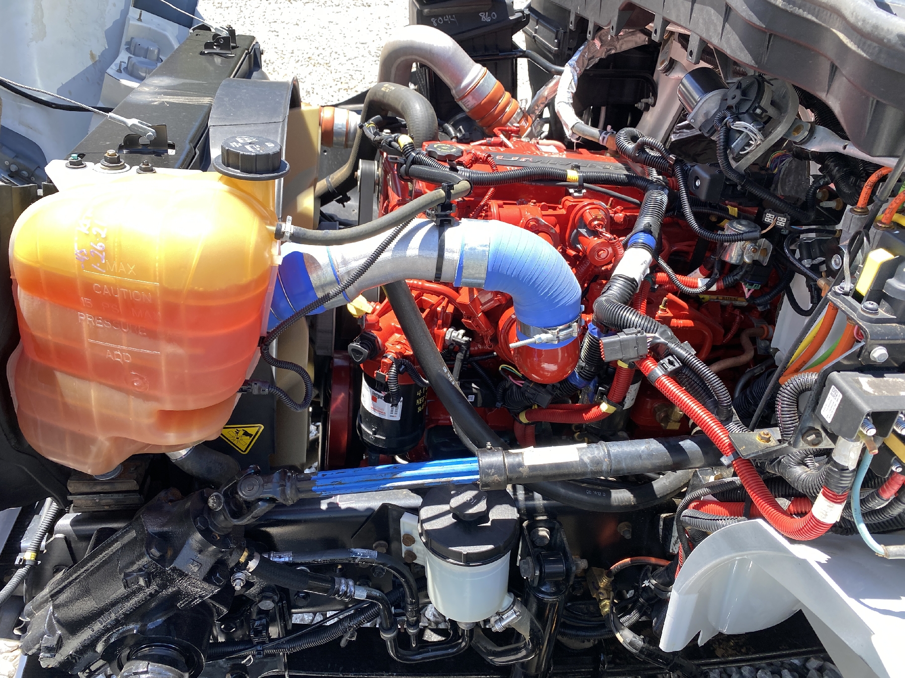 S/A, Cummins diesel, 6 speed trans, 33K GVWR, 14' Ox body, 11R22.5 tires