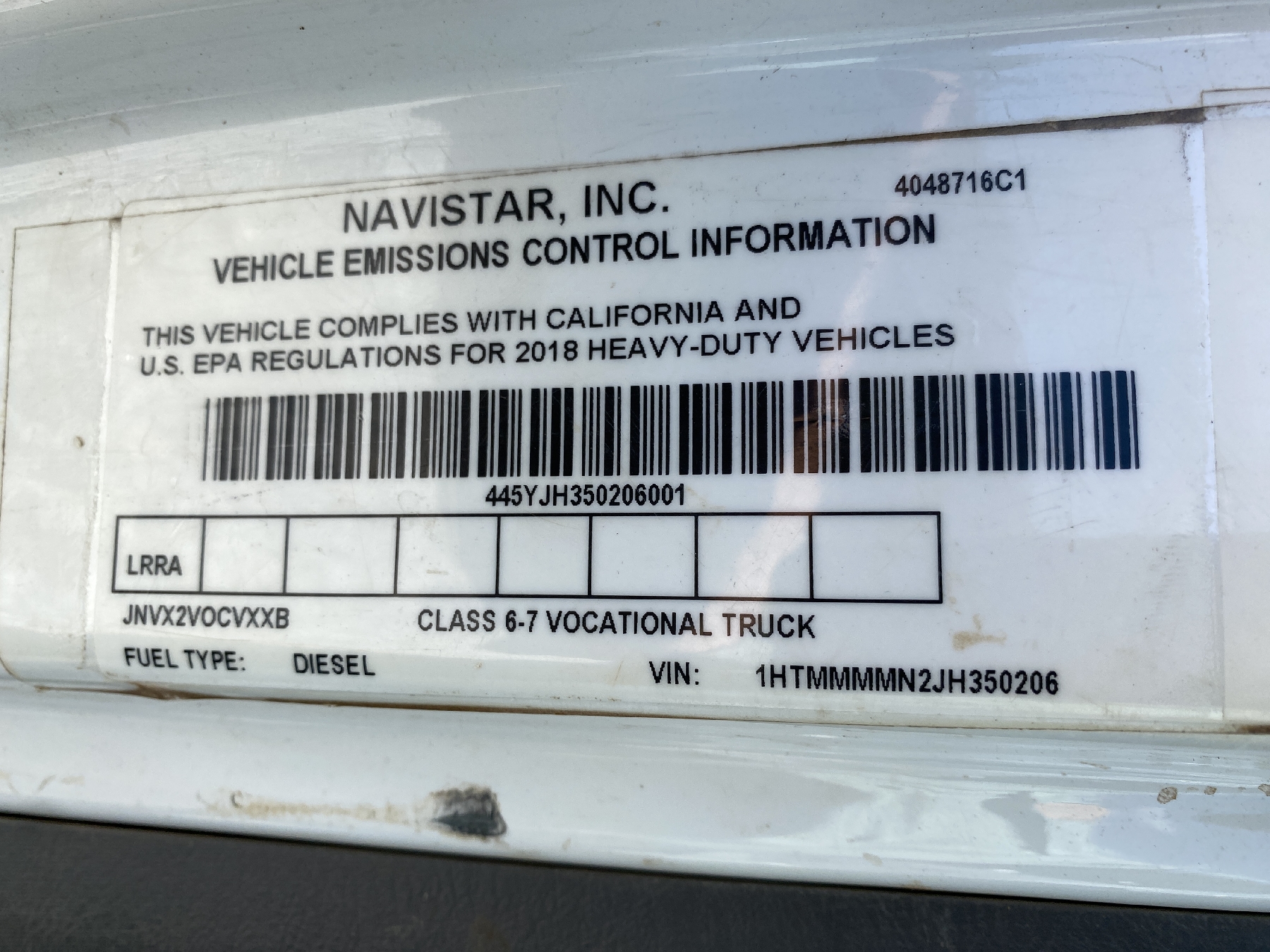 Vehicle ID Number: 1HTMMMMN2JH350206