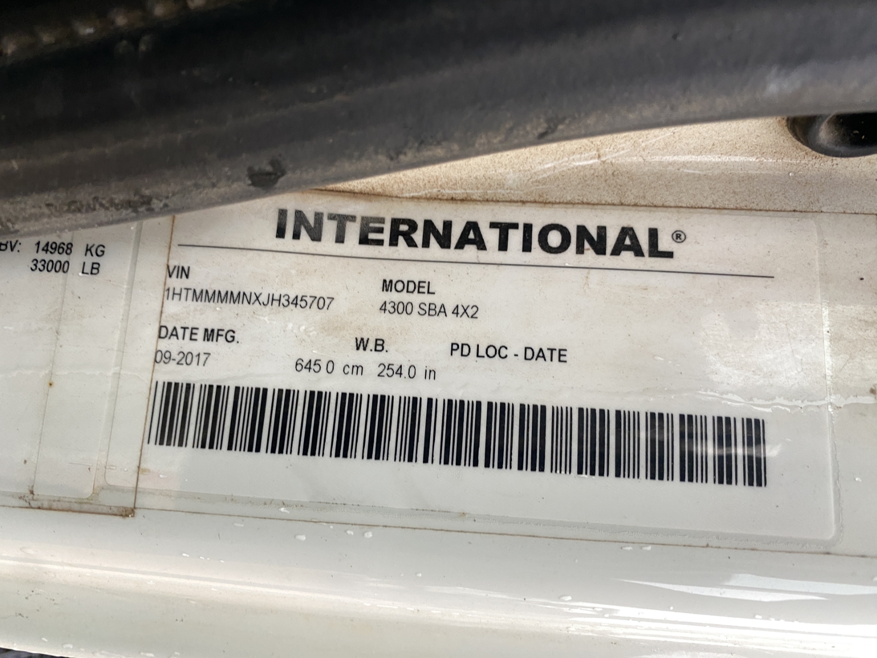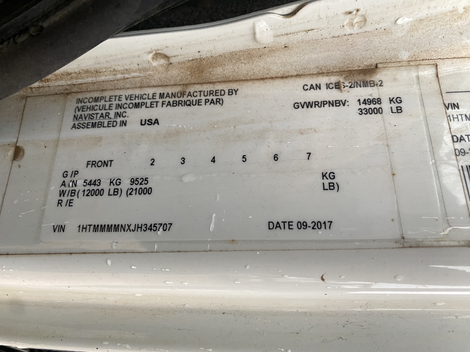 Vehicle ID Number: 1HTMMMMNXJH345707