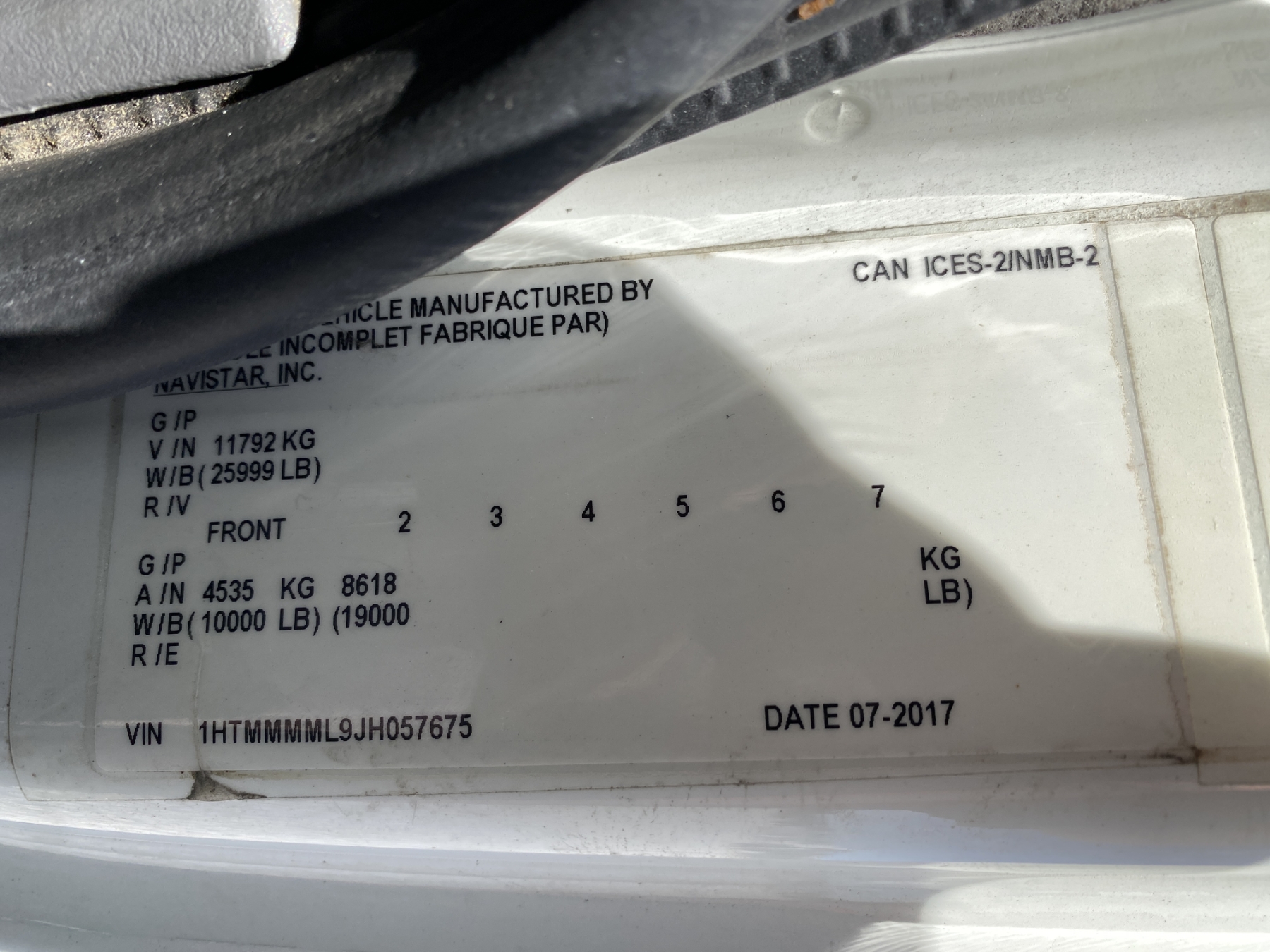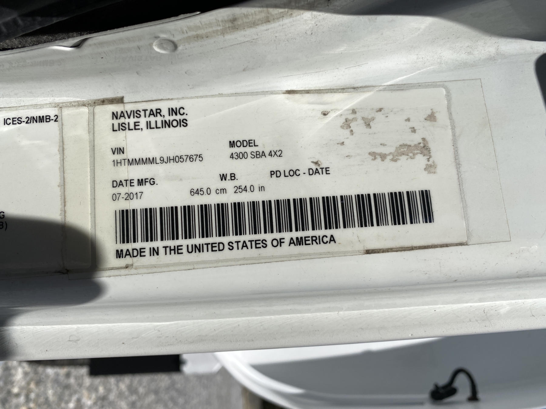 Vehicle ID Number: 1HTMMMML9JH057675