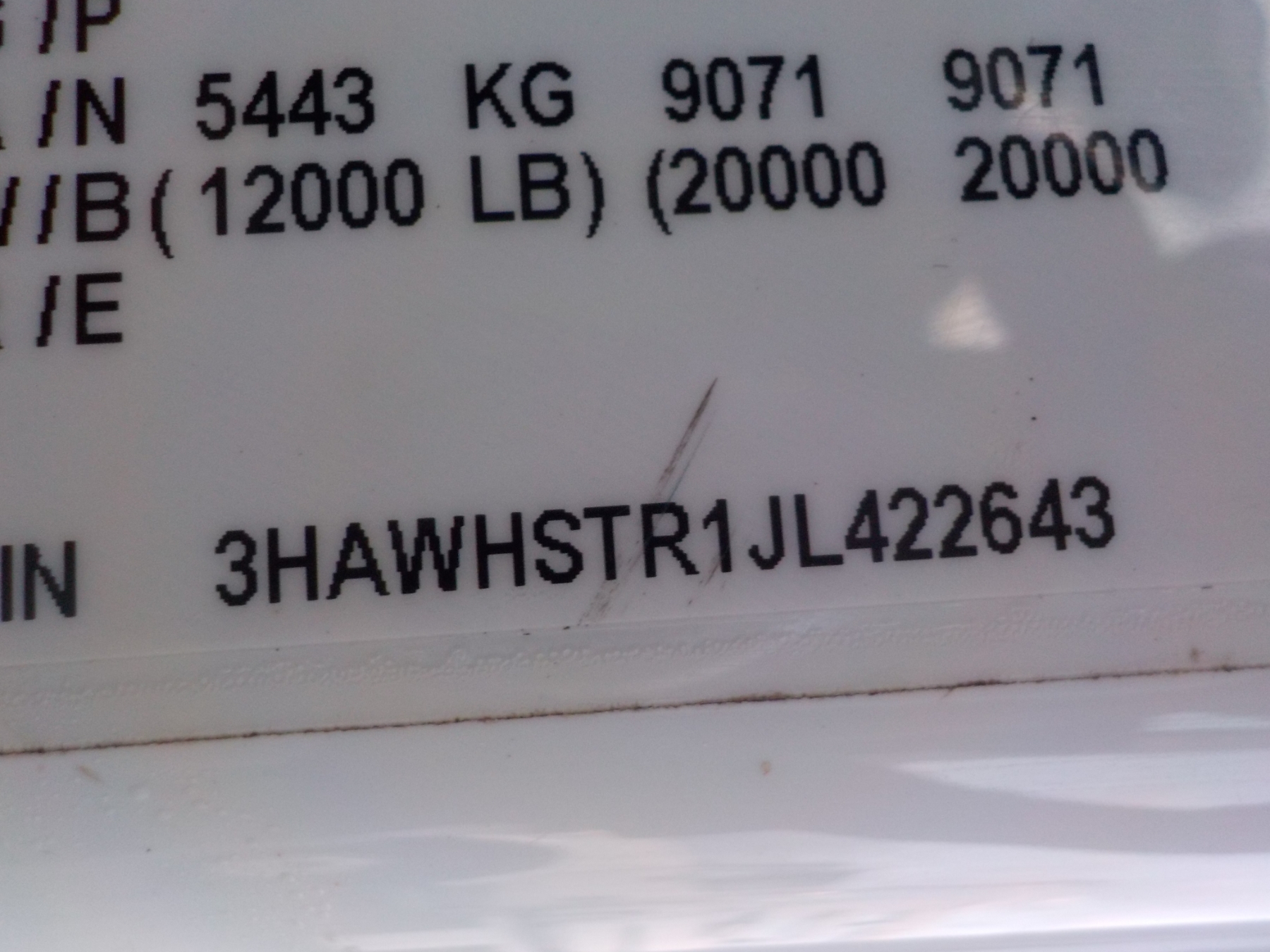 Vehicle ID Number: 3HAWHSTR1JL422643