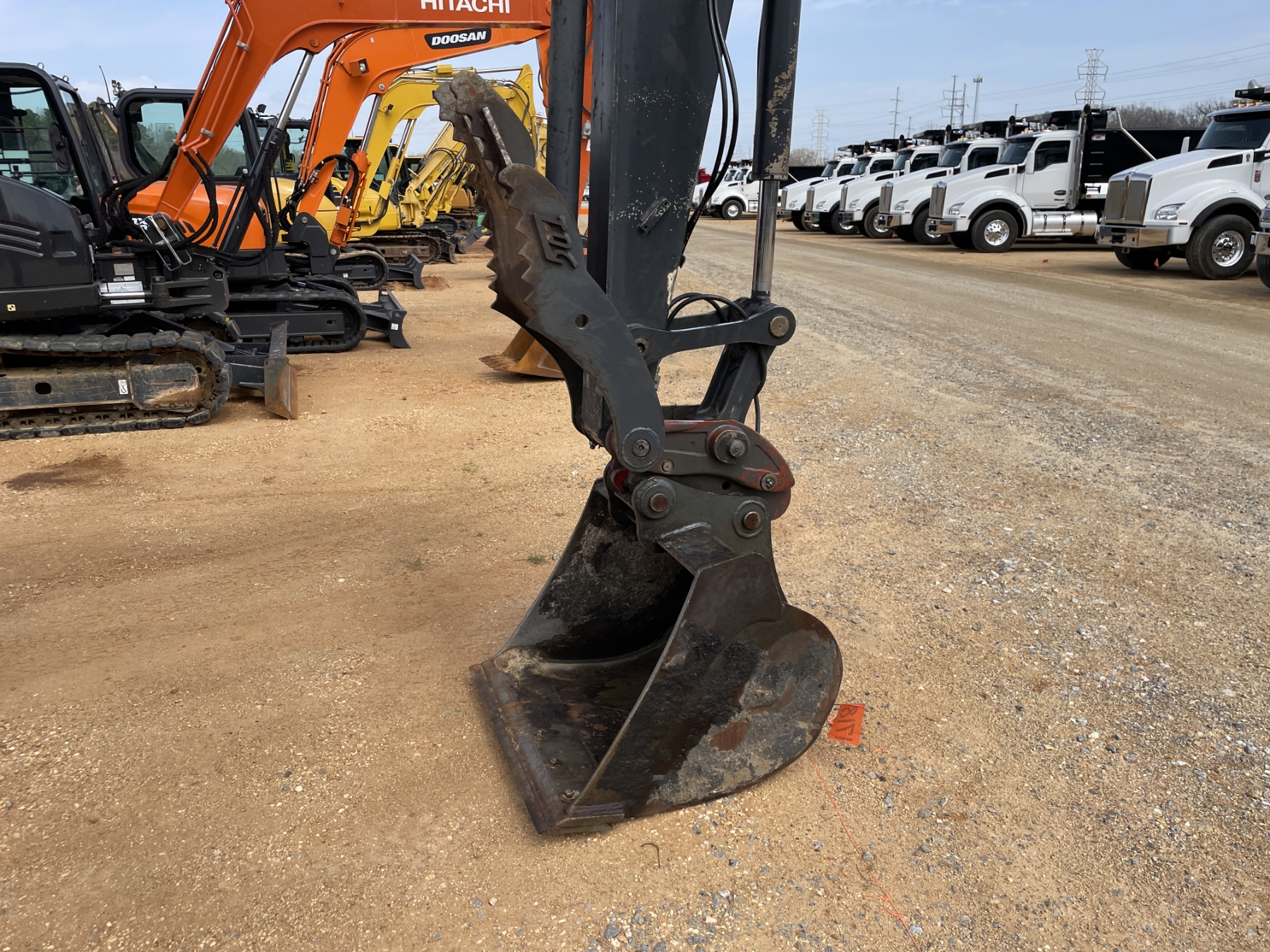 7' stick, 36" bucket, coupler, hyd thumb, aux hyd, blade, rubber pads, cab, A/C