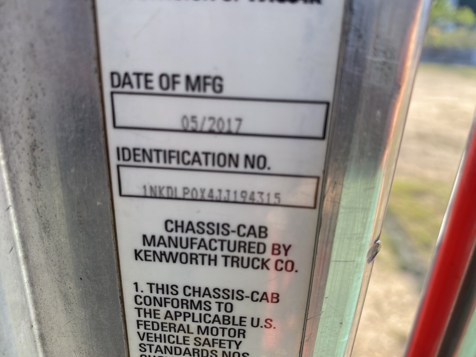 Vehicle ID Number: 1NKDLP0X4JJ194315