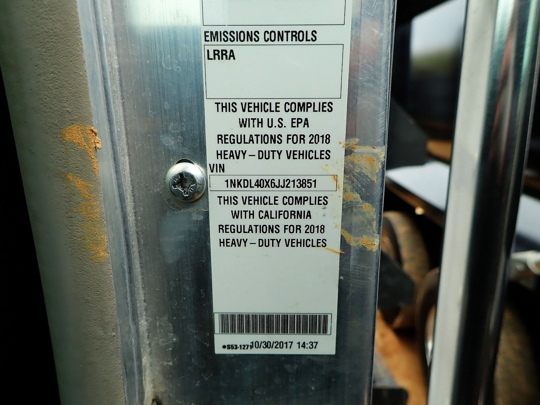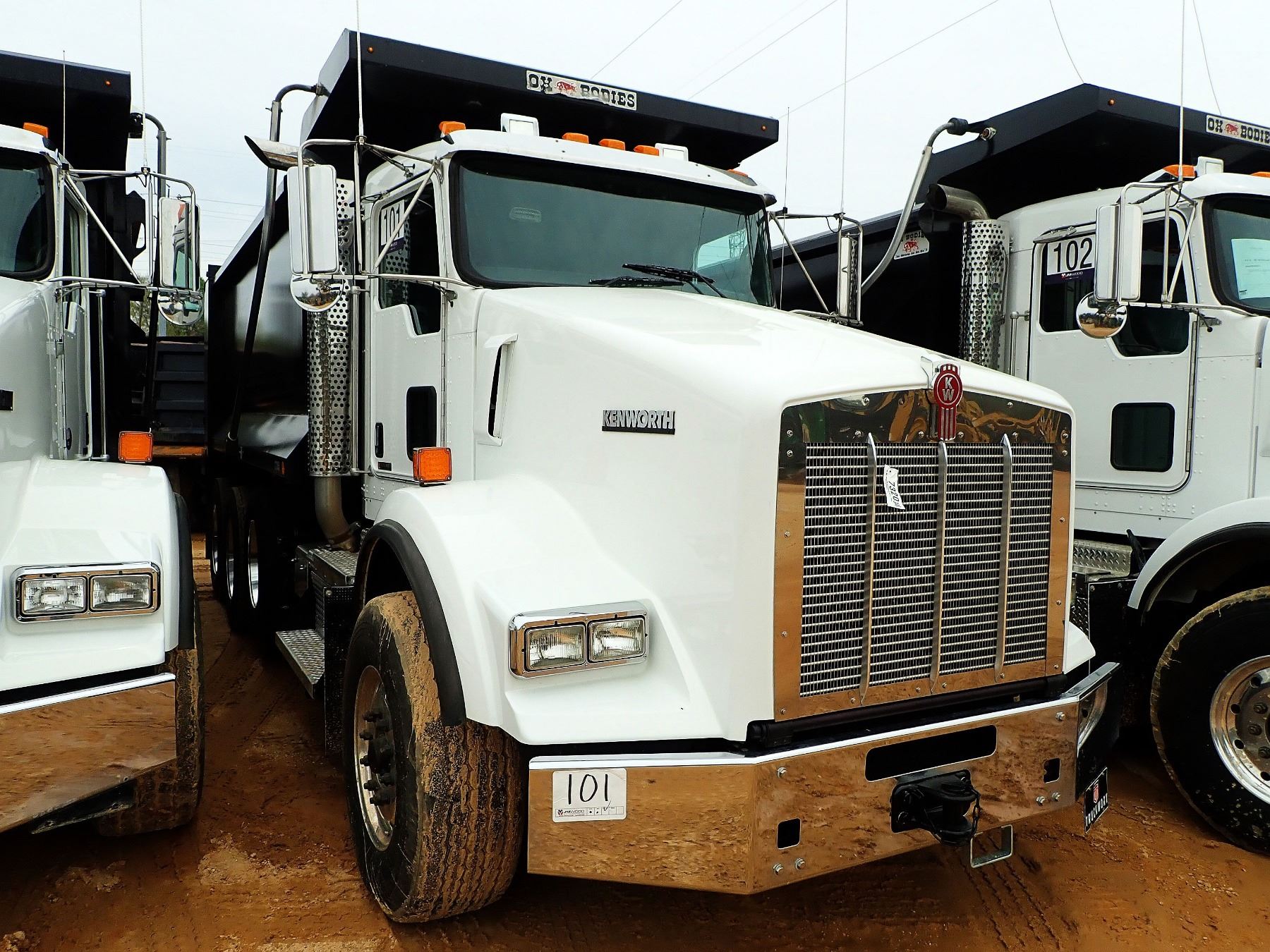2018 KENWORTH T800 DUMP, VIN/SN:1NKDL40X6JJ213851 - TRI-AXLE, 500 HP CUMMINS ENGINE, ALLISON 4500 RDS A/T, 46K REARS, 20K FRONT, 16' HARD OX BODY, 11R24.5 REAR TIRES, 425/65R22.5 TIRES, ALL ALUM, ODOMETER READING 23,536 MILES (COUNTY OWNED)