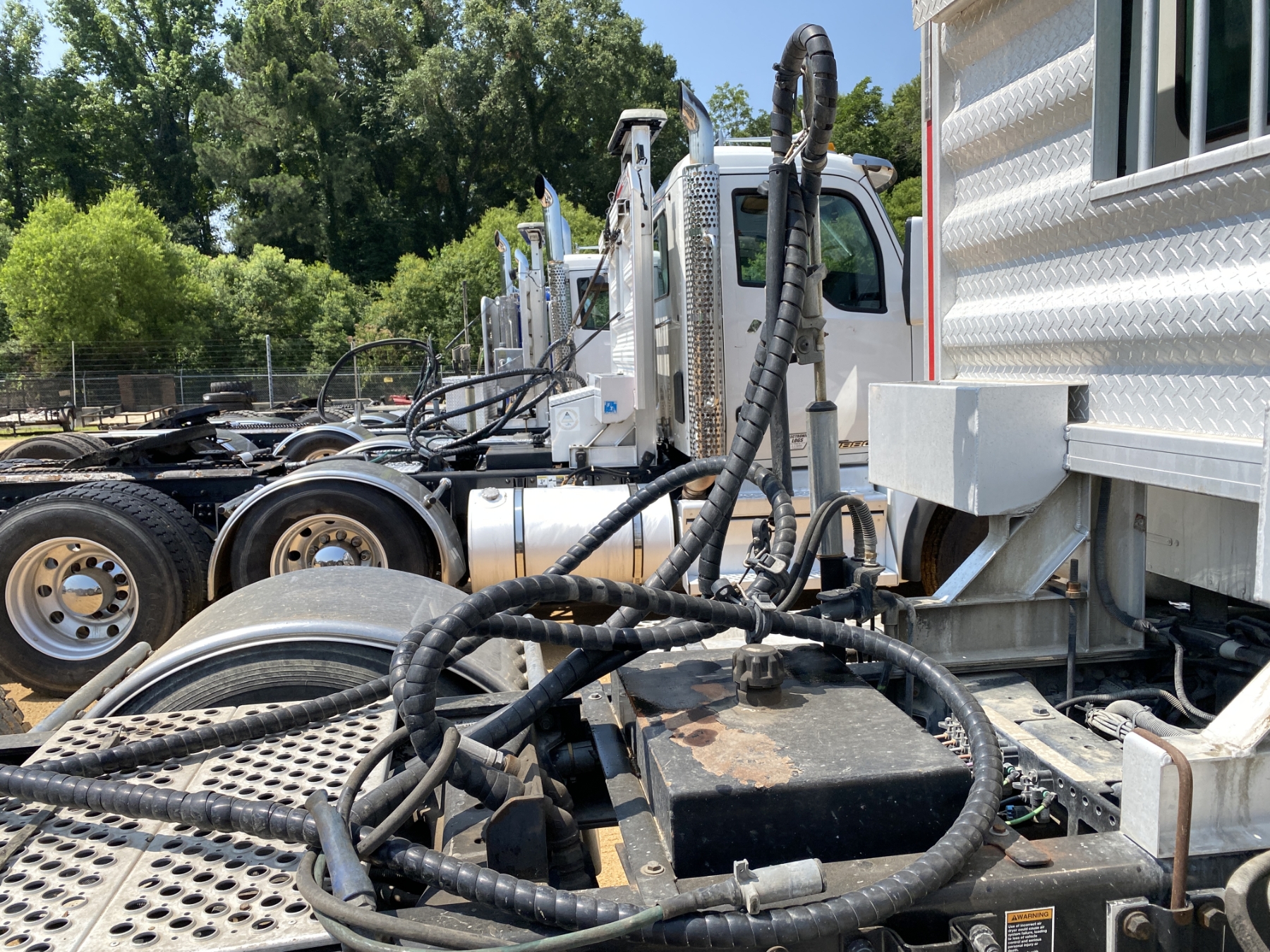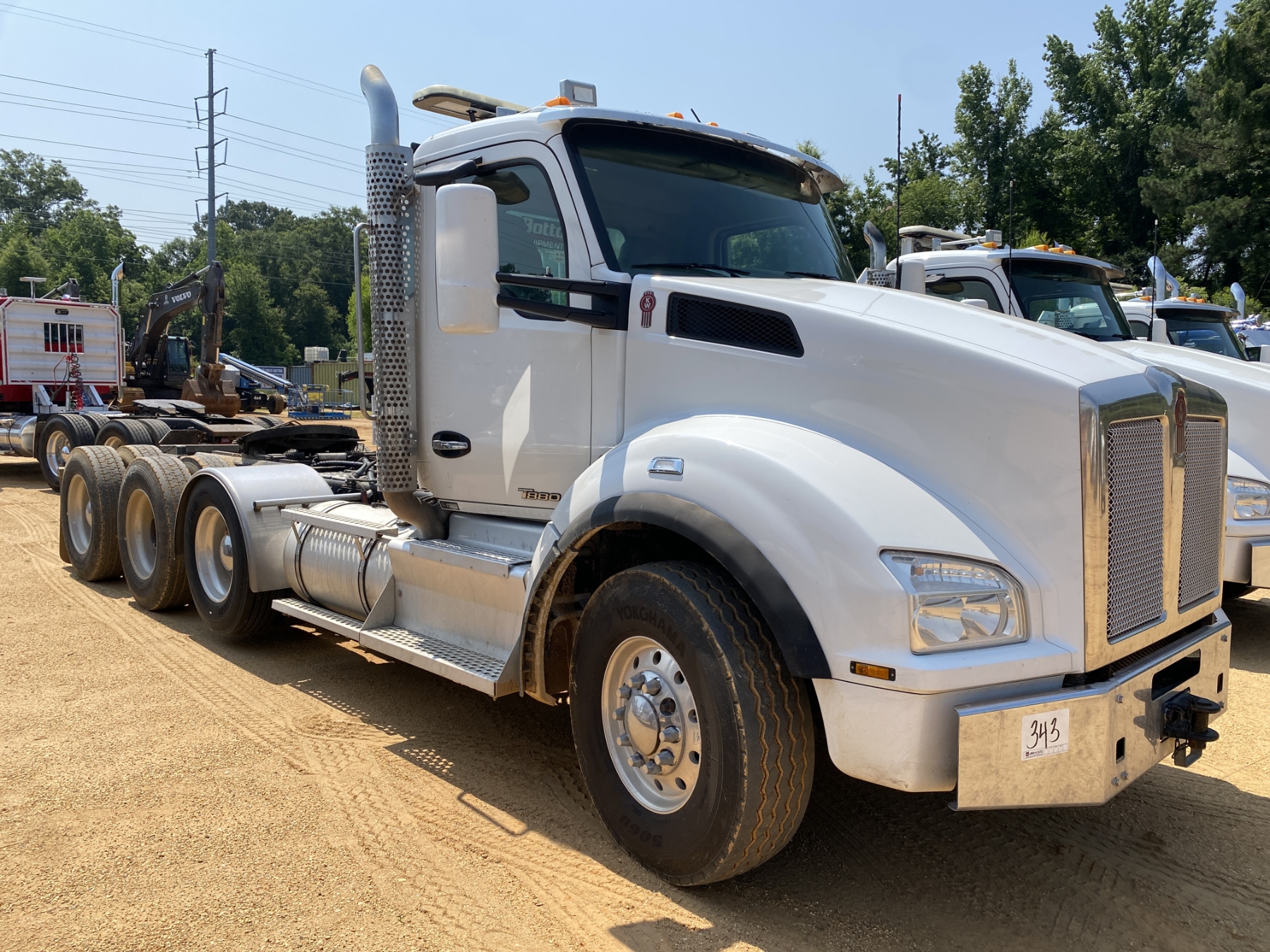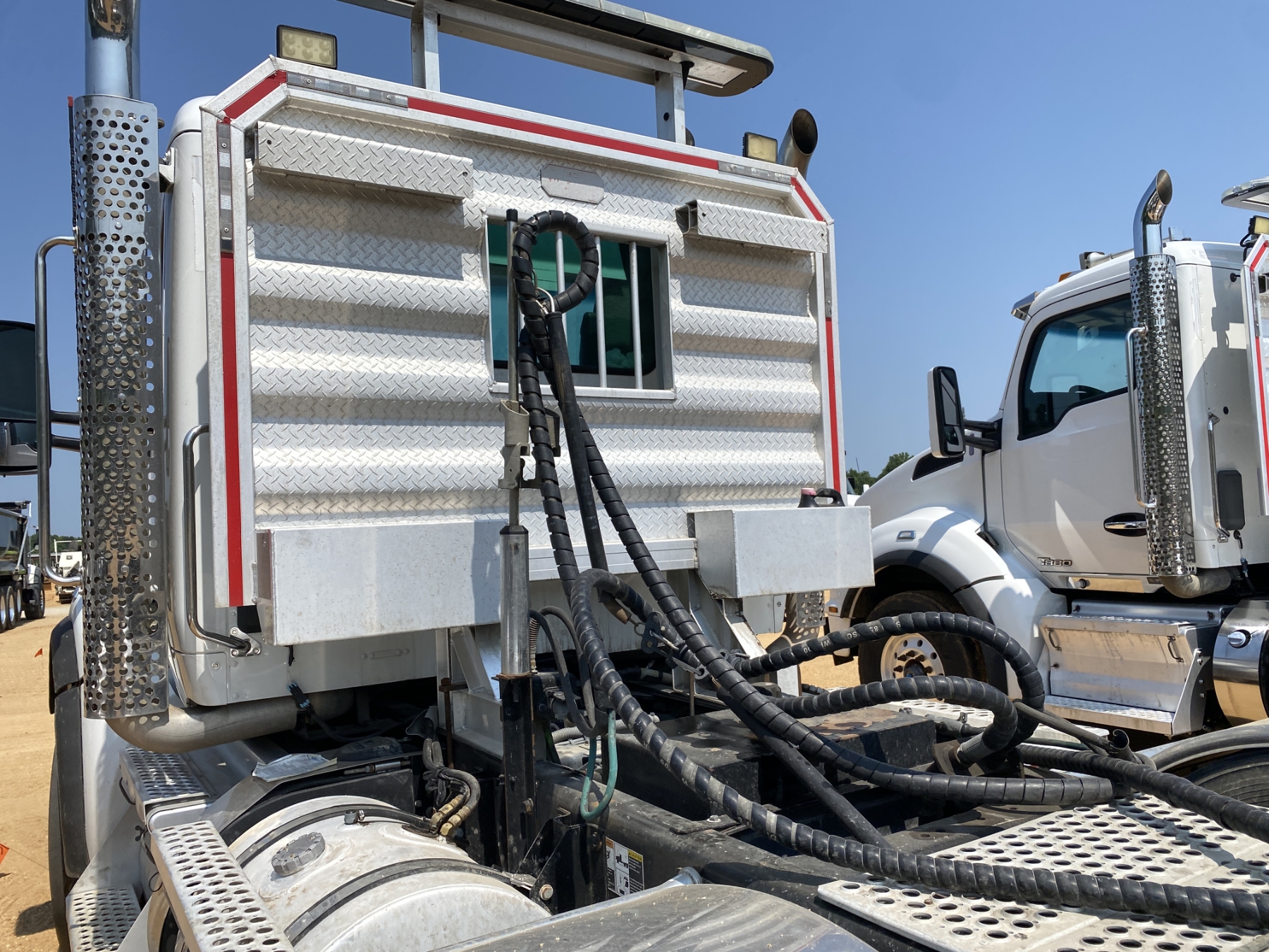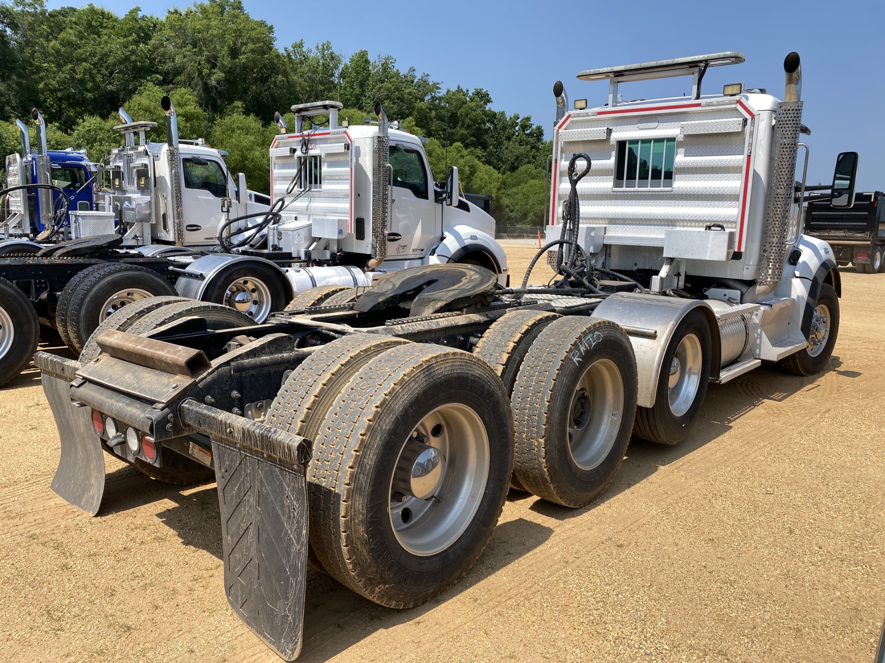 Tri Axle, 525 HP Cummins X15 engine, 18 speed trans, 46K rears, air ride, 20K rears, 242" W/B, wet kit, alum headache rack, 11R24.5 rear tires, 315/80R22.5 front tires, all alum