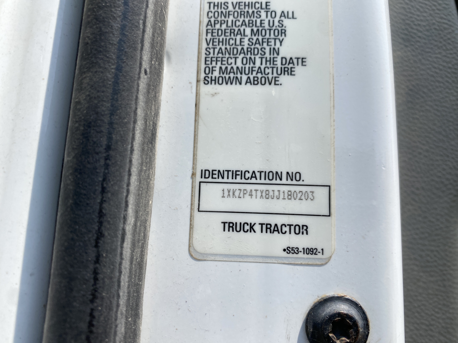 Vehicle ID Number: 1XKZP4TX8JJ180203