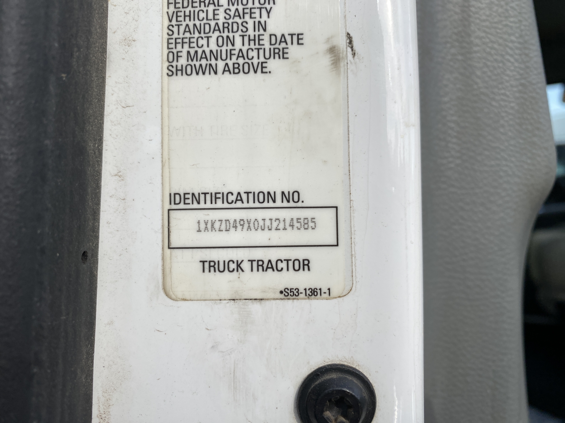 Vehicle ID Number: 1XKZD49X0JJ214585