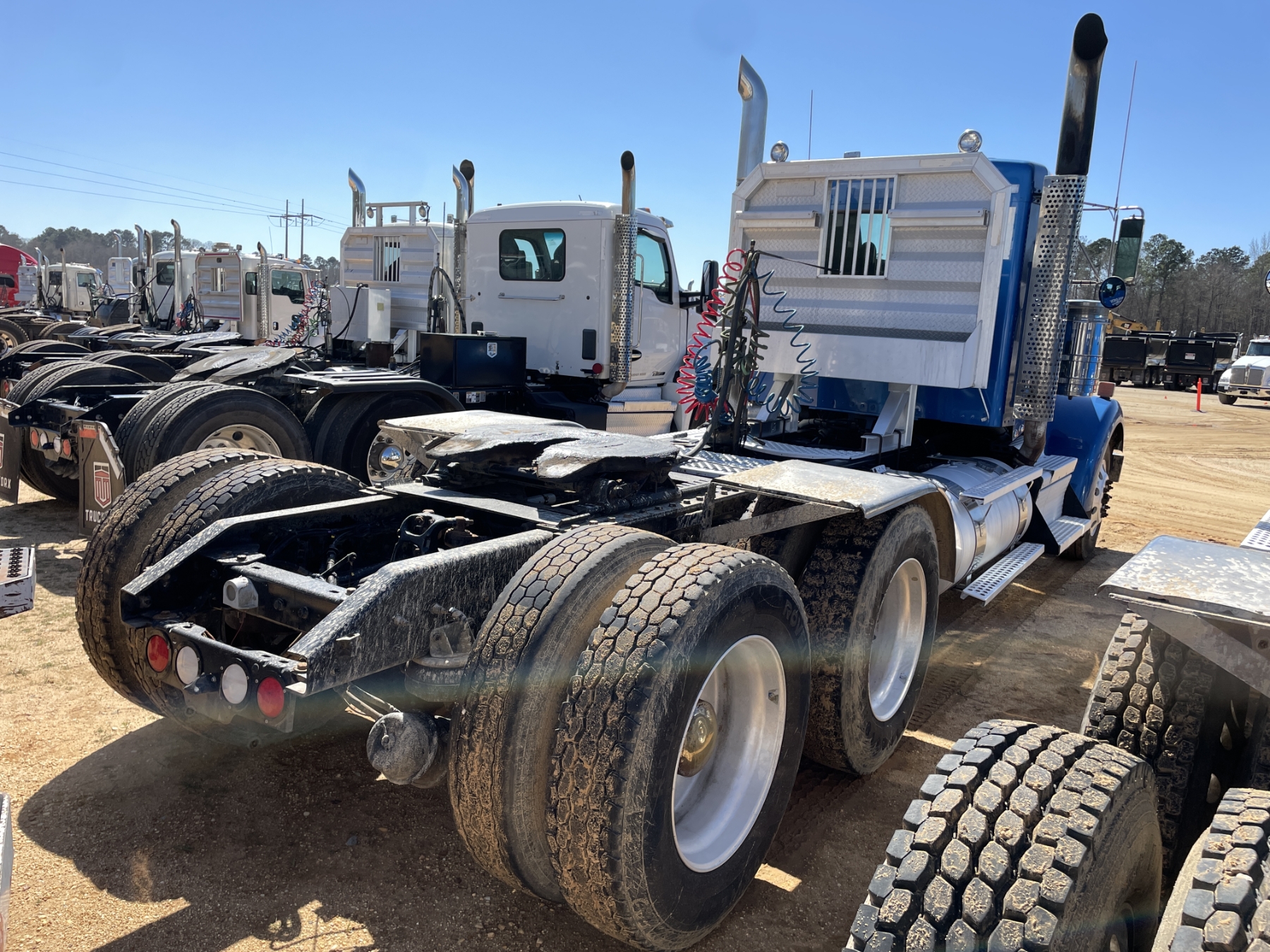 T/A, 450 HP Cummins X15 engine, A/T, 46K rears, air ride, 13,200 lb. front, 232" W/B, wet kit, alum headache rack, 11R24.5 tires, all alum