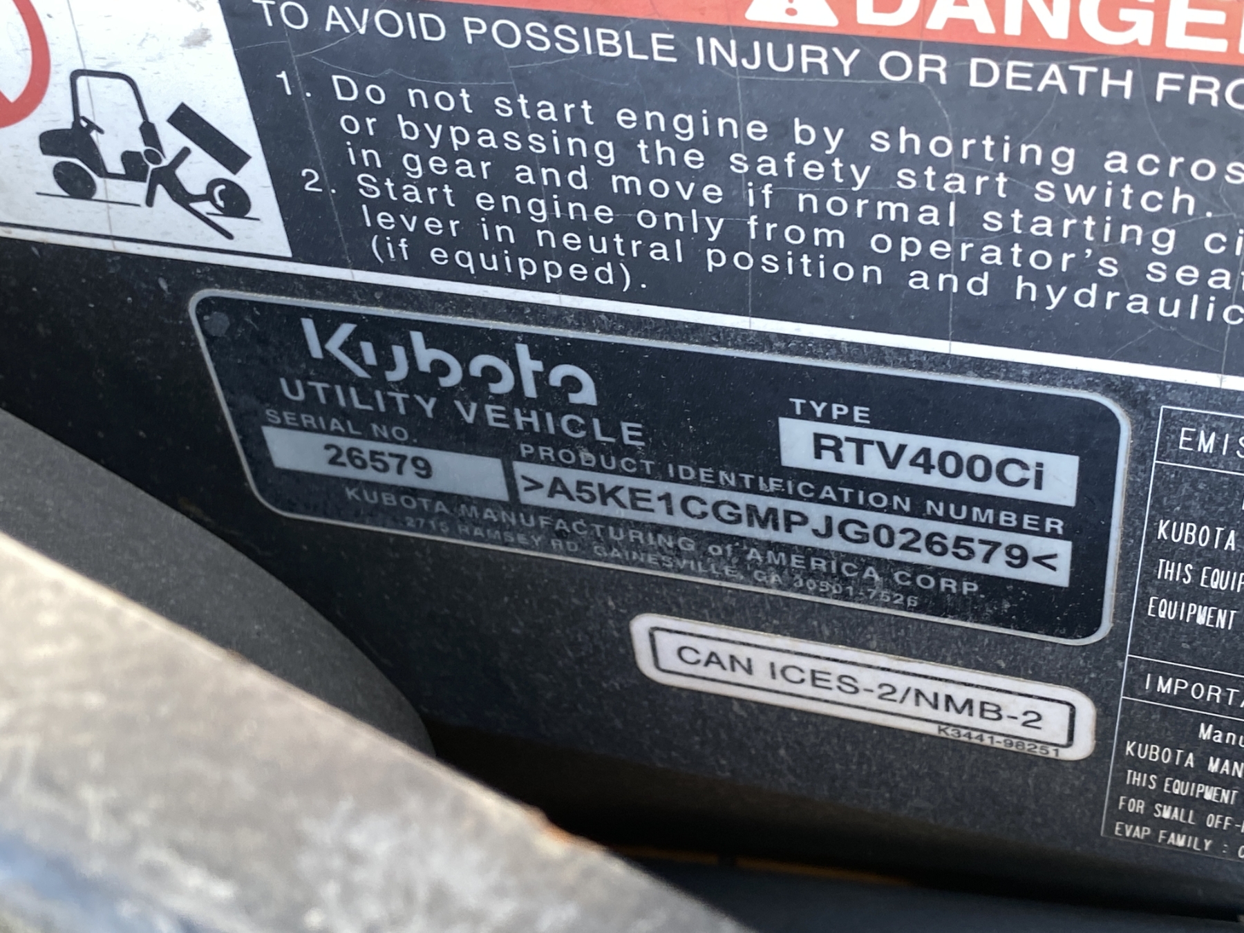 2018 KUBOTA RTV-400 UTV