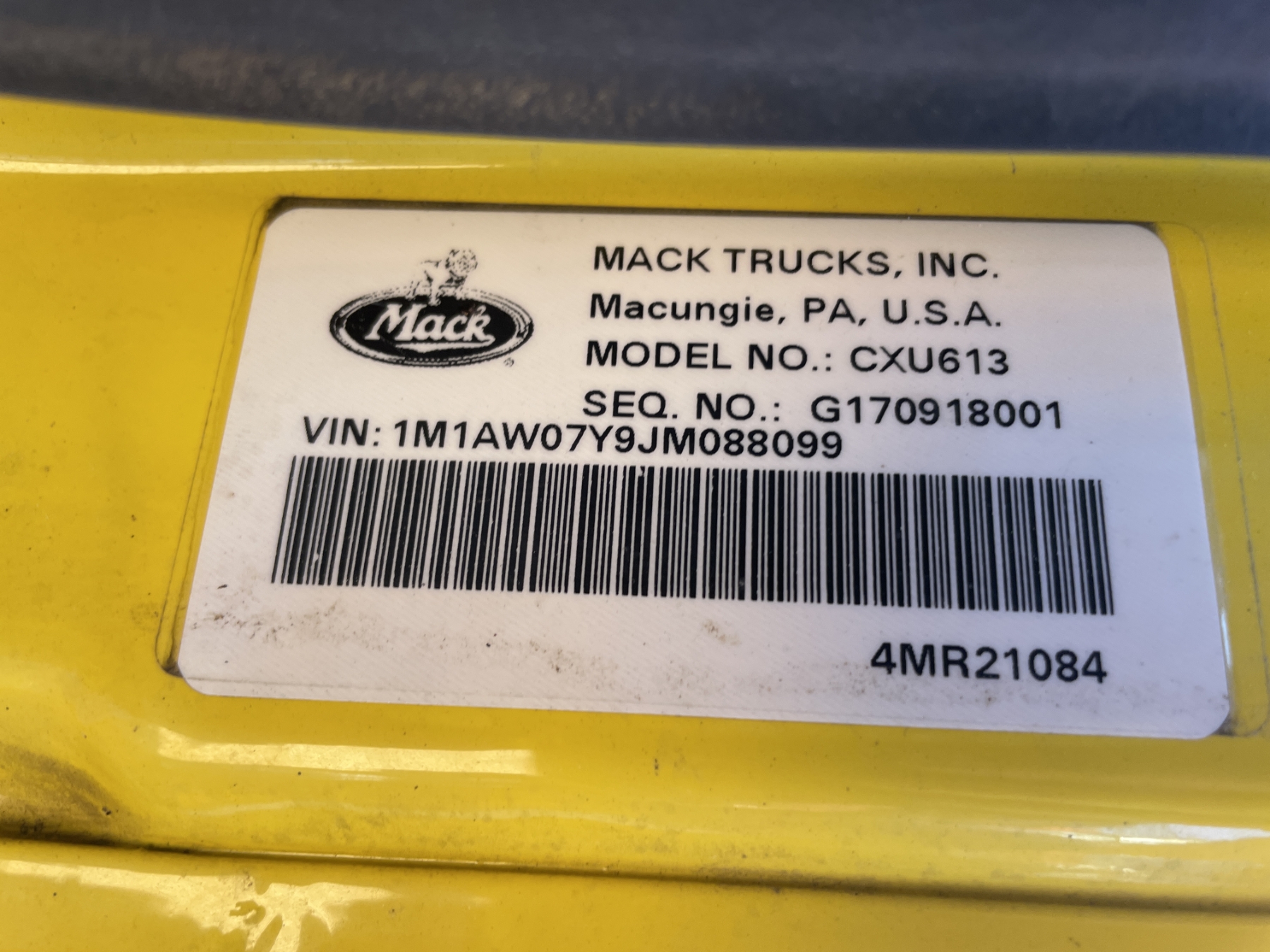 Vehicle ID Number: 1M1AW07Y9JM088099