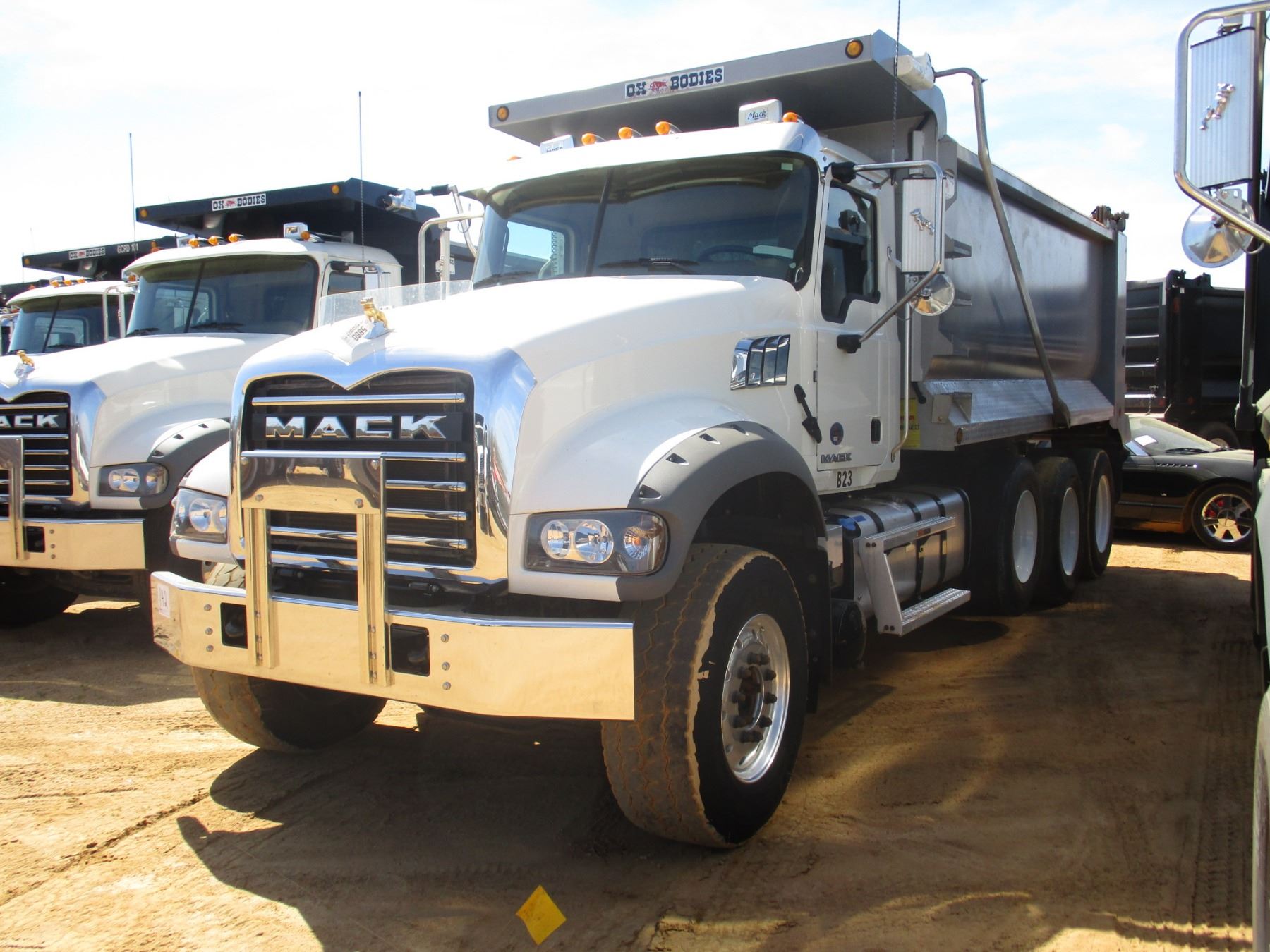 2018 MACK GU713 DUMP, VIN/SN:1M2AX07C8JM037626 - TRI-AXLE, 455 HP MACK MP8 ENGINE, MACK T310M 10 SPEED TRANS, 44K REARS, 20K FRONT, ENGINE BRAKE, 16' HARD OX BODY, 425/65R22.5 FRONT TIRES, 11R24.5 REAR TIRES, ALUM FRONT, ODOMETER READING 34,117 MILES