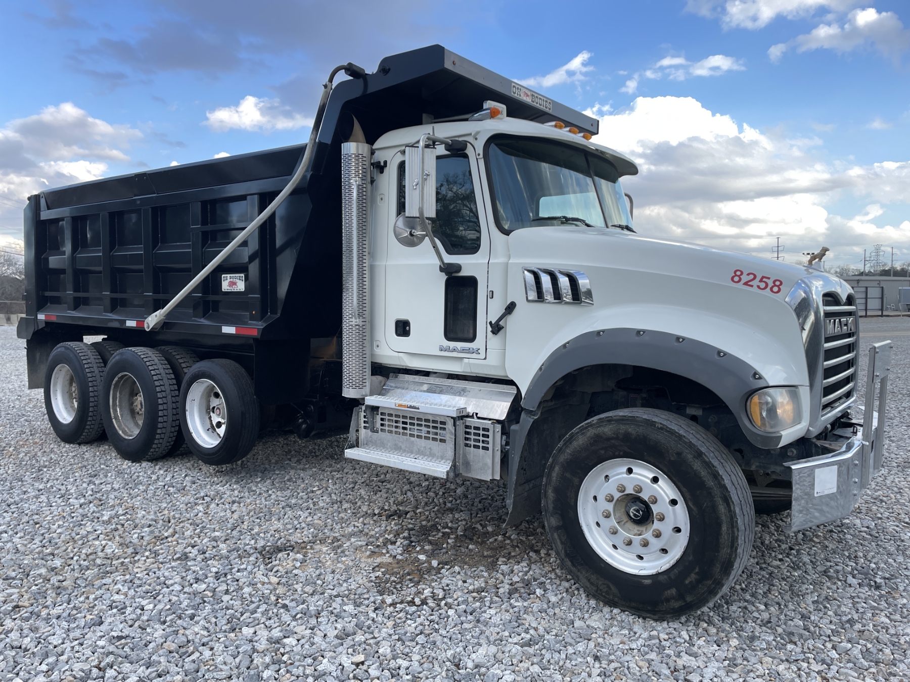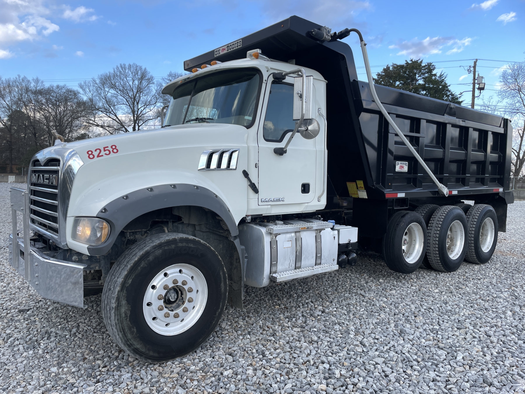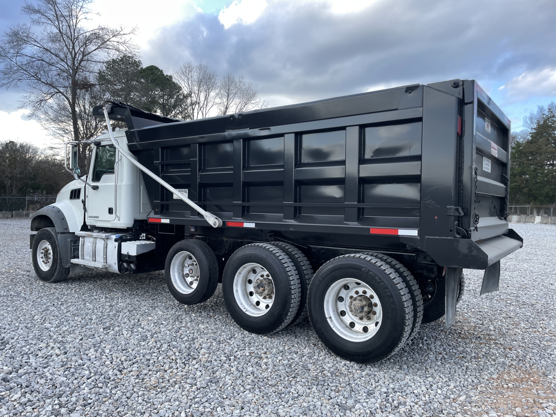 Tri Axle, 425 HP Mack MP7 engine, Mack mDrive auto shift trans, 44K rears, 18K front, 16' Ox body, 11R24.5 rear tires, 315/80R22.5 front tires, all alum