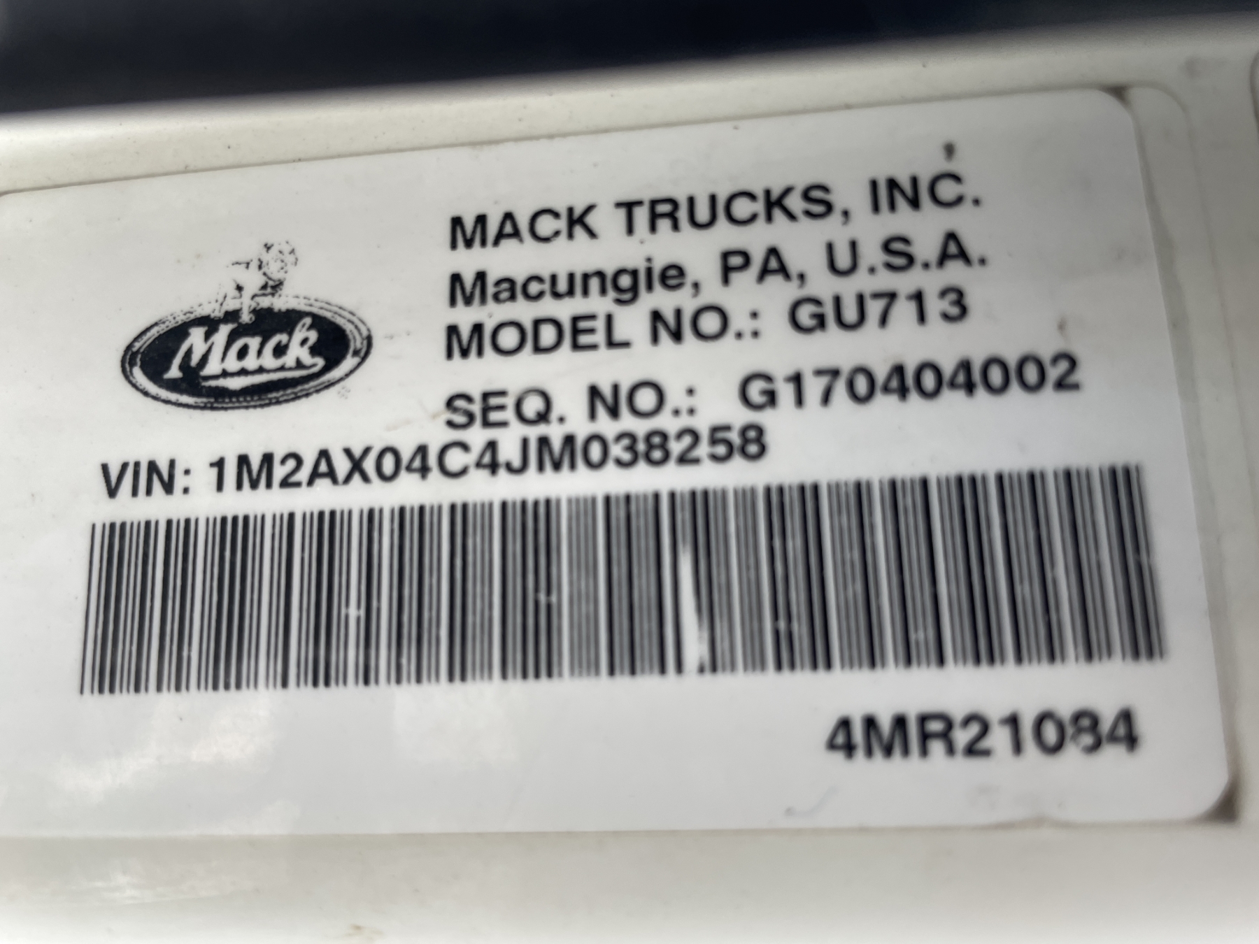 Vehicle ID Number: 1M2AX04C4JM038258