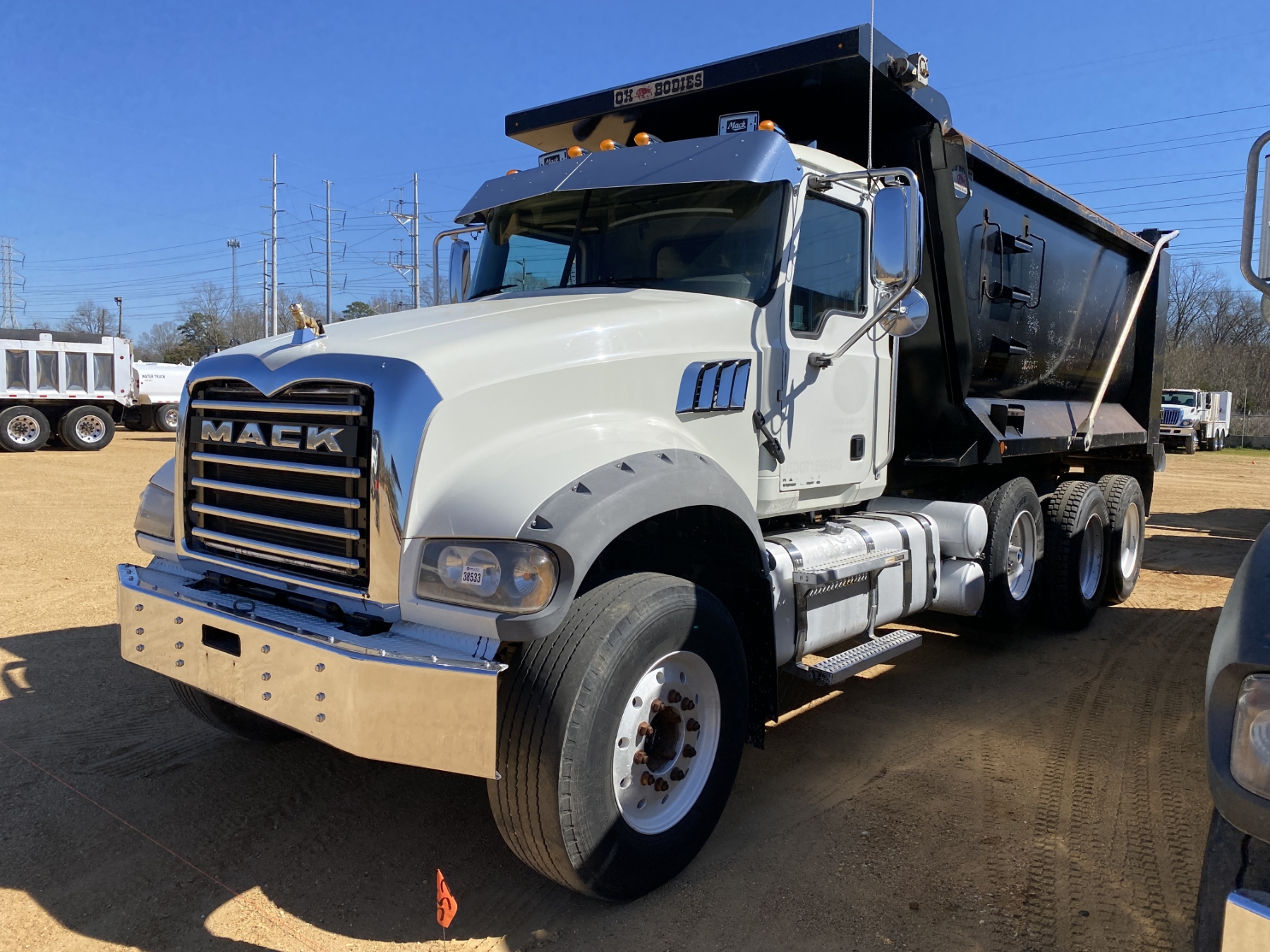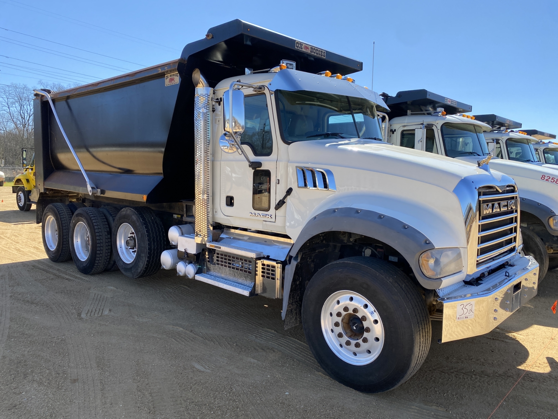 Tri Axle, 455 HP Mack MP8 engine, Mack mDrive auto shift trans, 46K rears, 20K rears, 16' Hard Ox body, 11R24.5 rear tires, 385/65R22.5 front tires