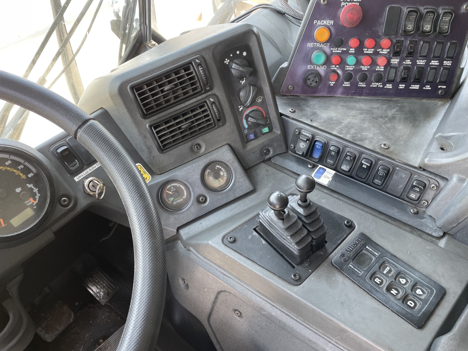 T/A, Mack engine, Allison A/T, 28 Yd. Heil front loader body, 11R22.5 rear tires, 385/65R22.5 front tires