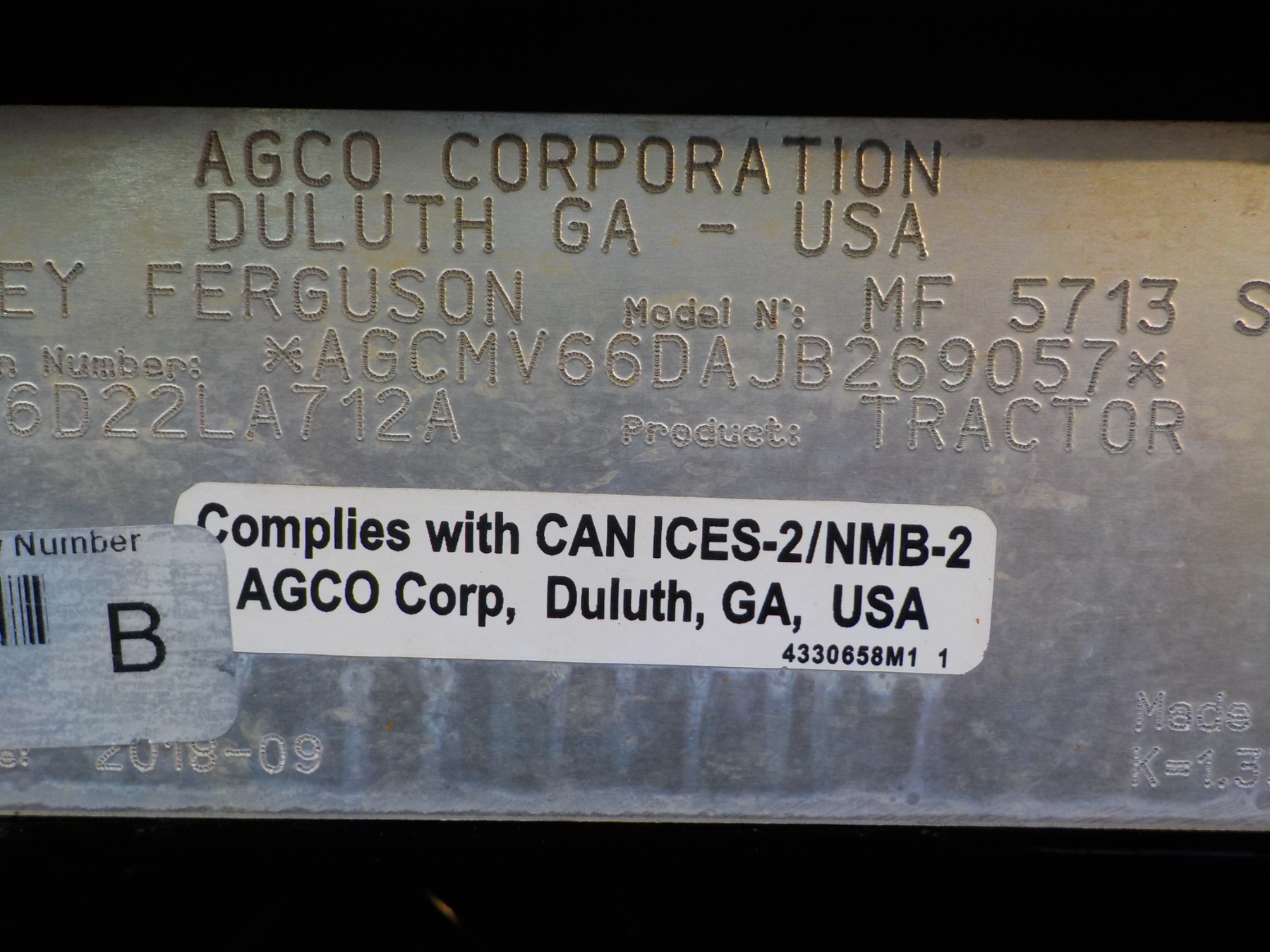 2018 MASSEY FERGUSON 5713 Farm Tractor
