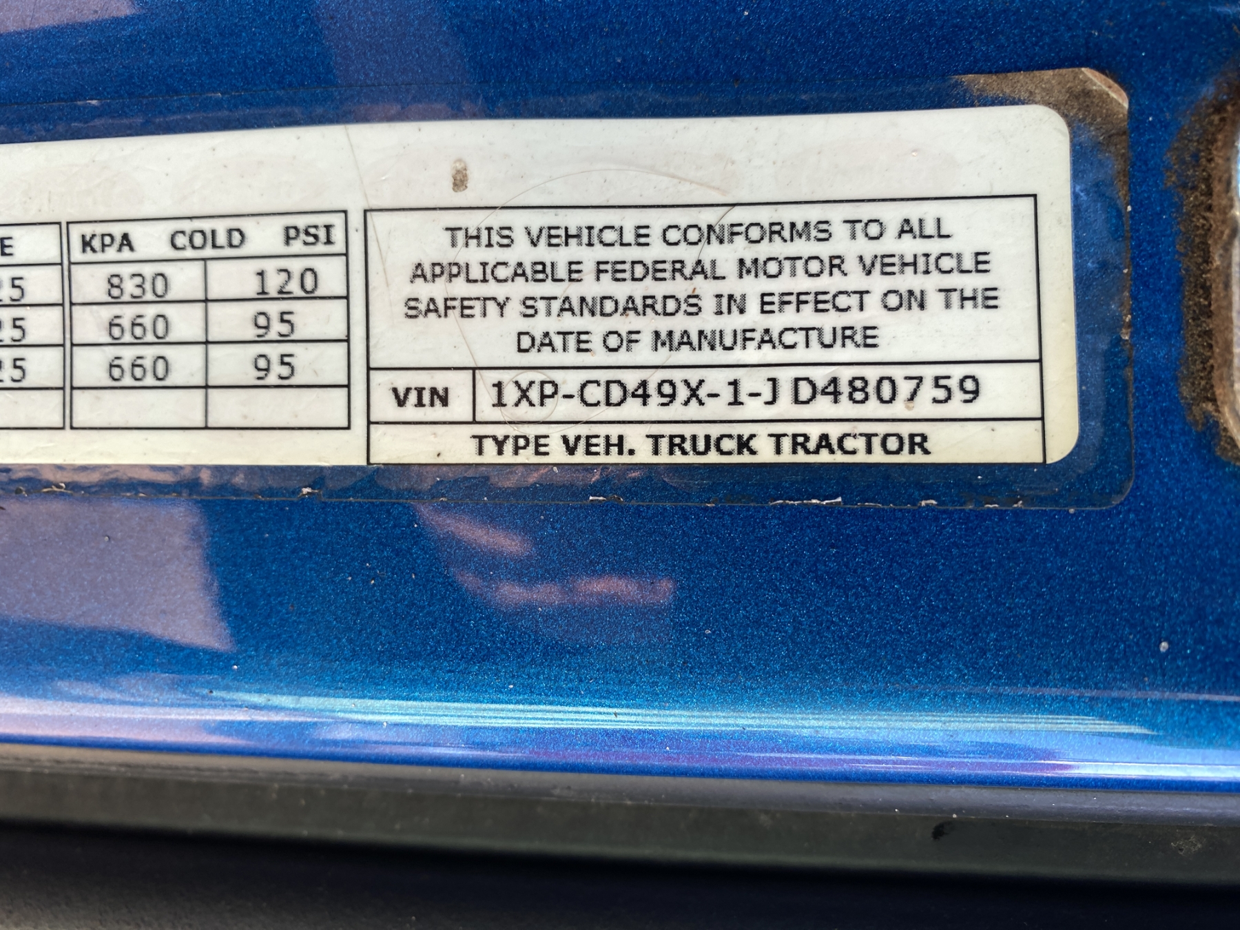 Vehicle ID Number: 1XPCD49X1JD480759