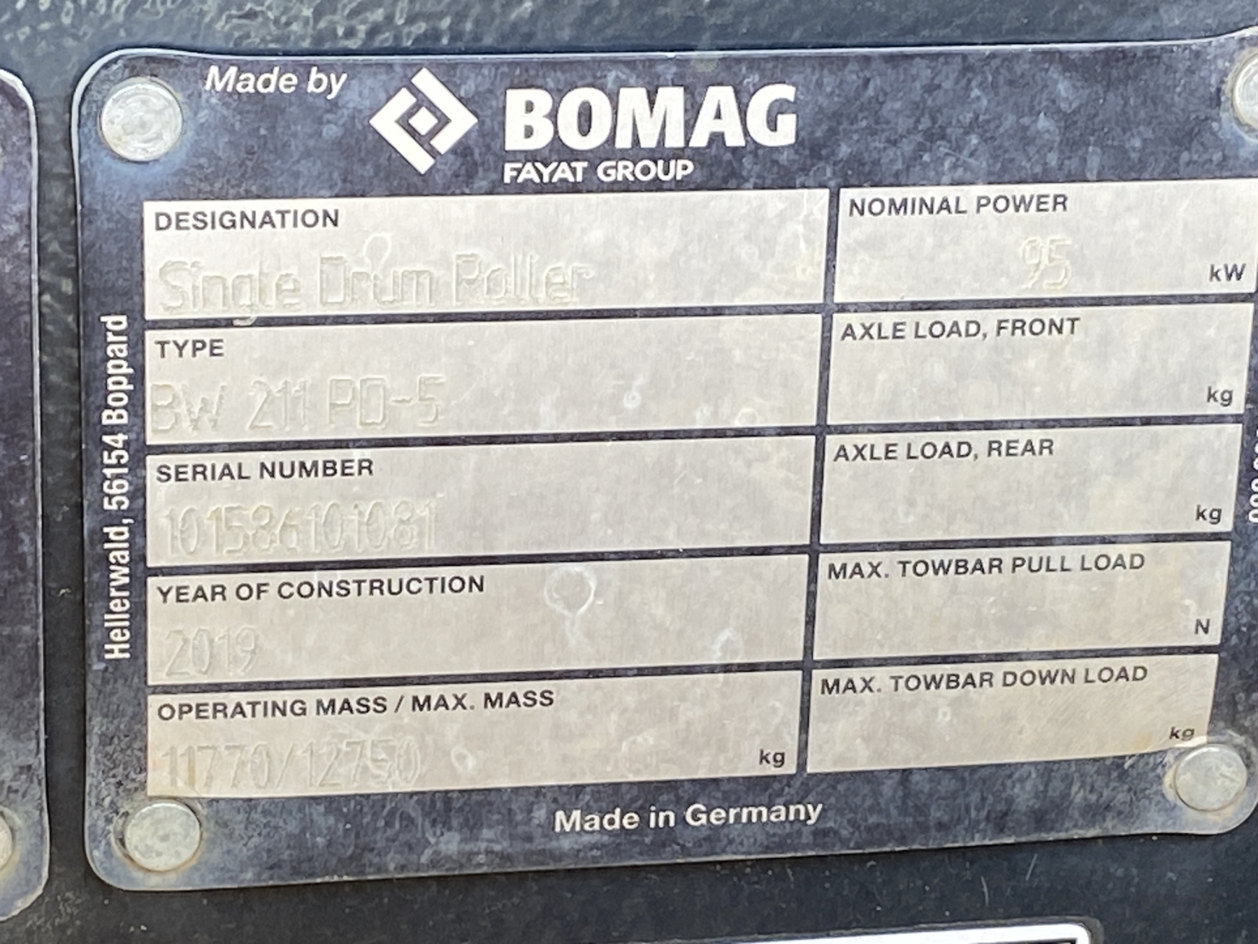 2019 BOMAG BW211PD-5 Roller