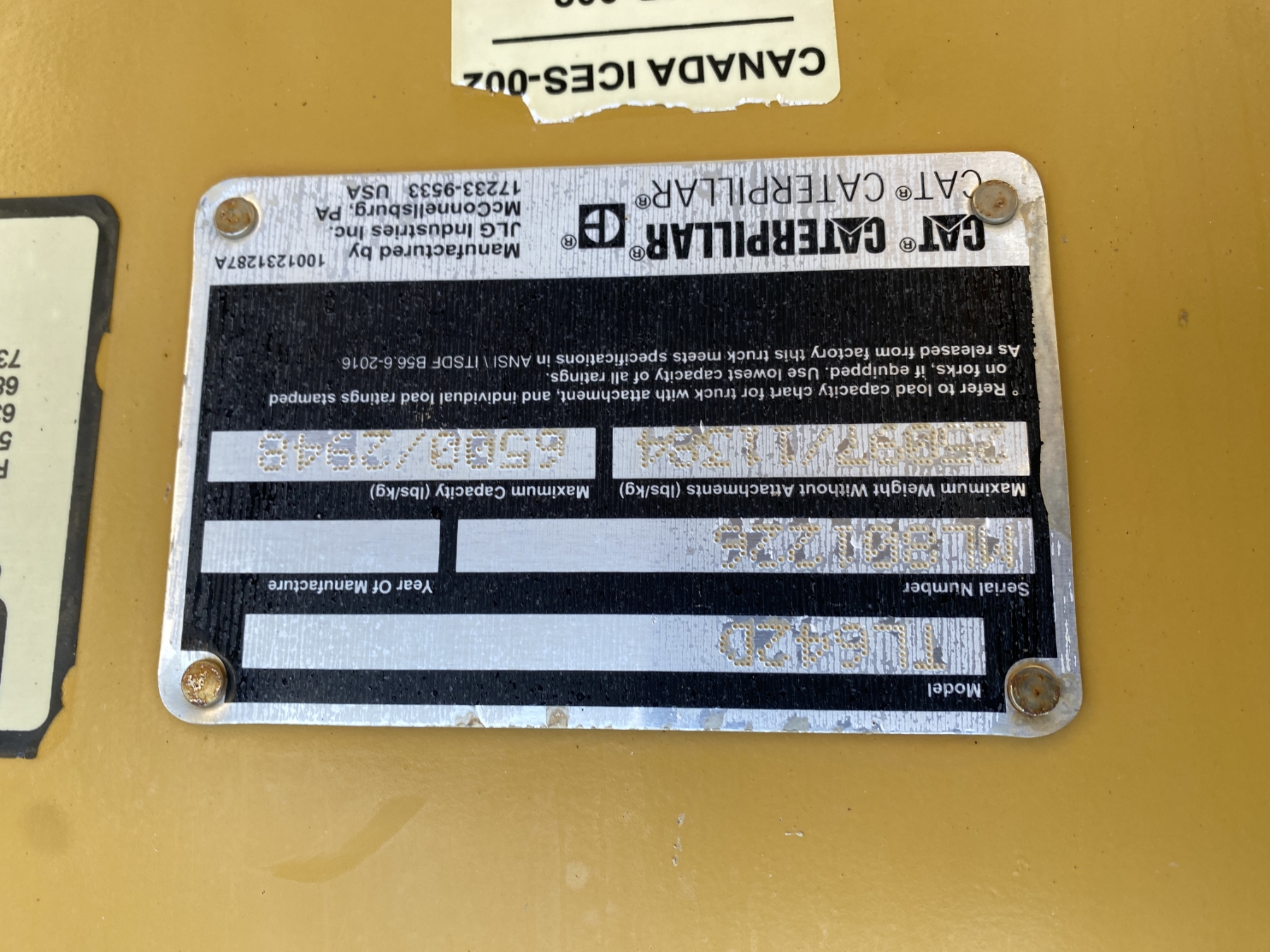 6,500 lb. capacity, 42' reach, canopy, 13.00-24 tires