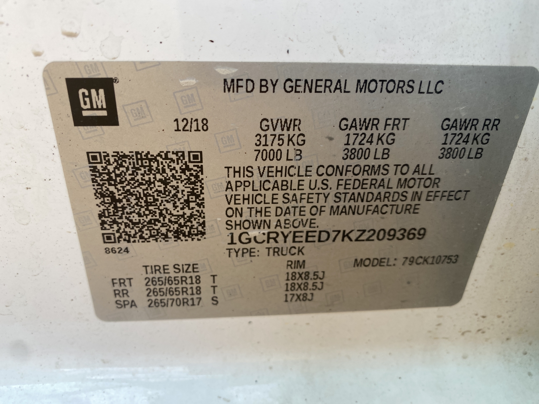 Vehicle ID Number: 1GCRYEED7KZ209369
