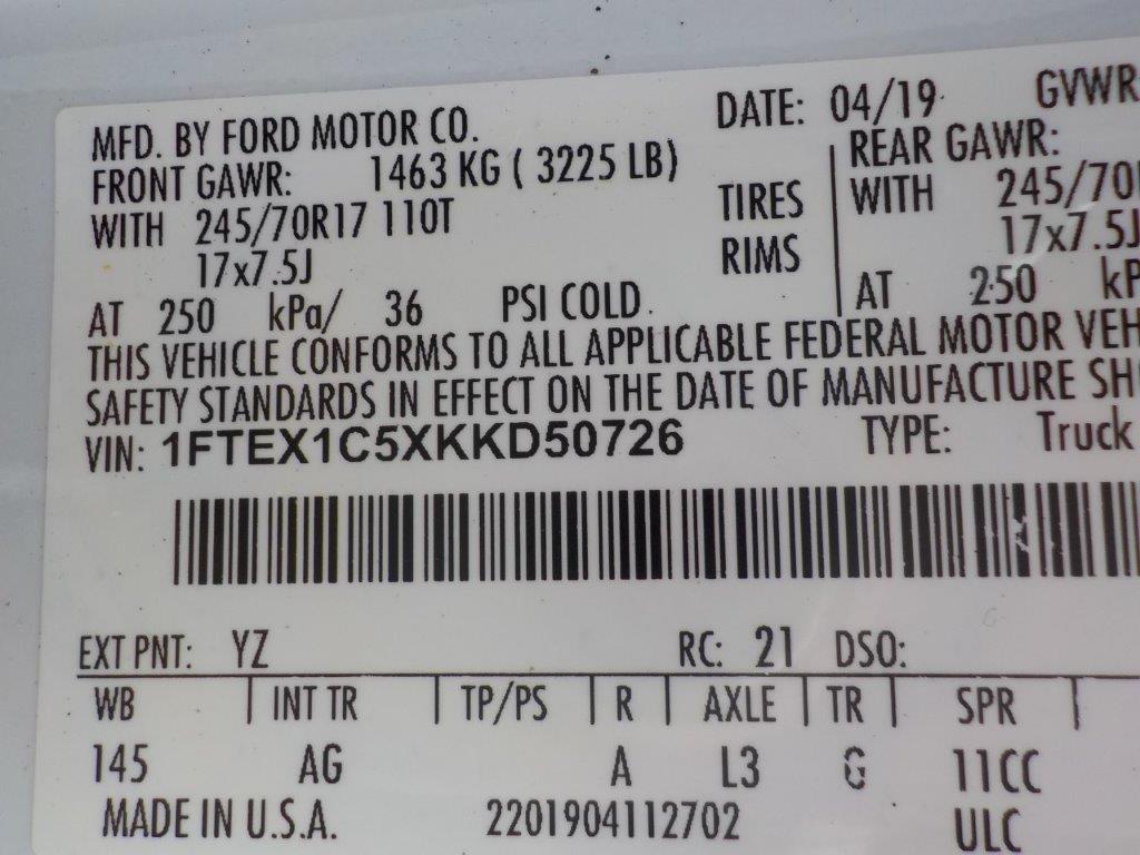 Vehicle ID Number: 1FTEX1C5XKKD50726