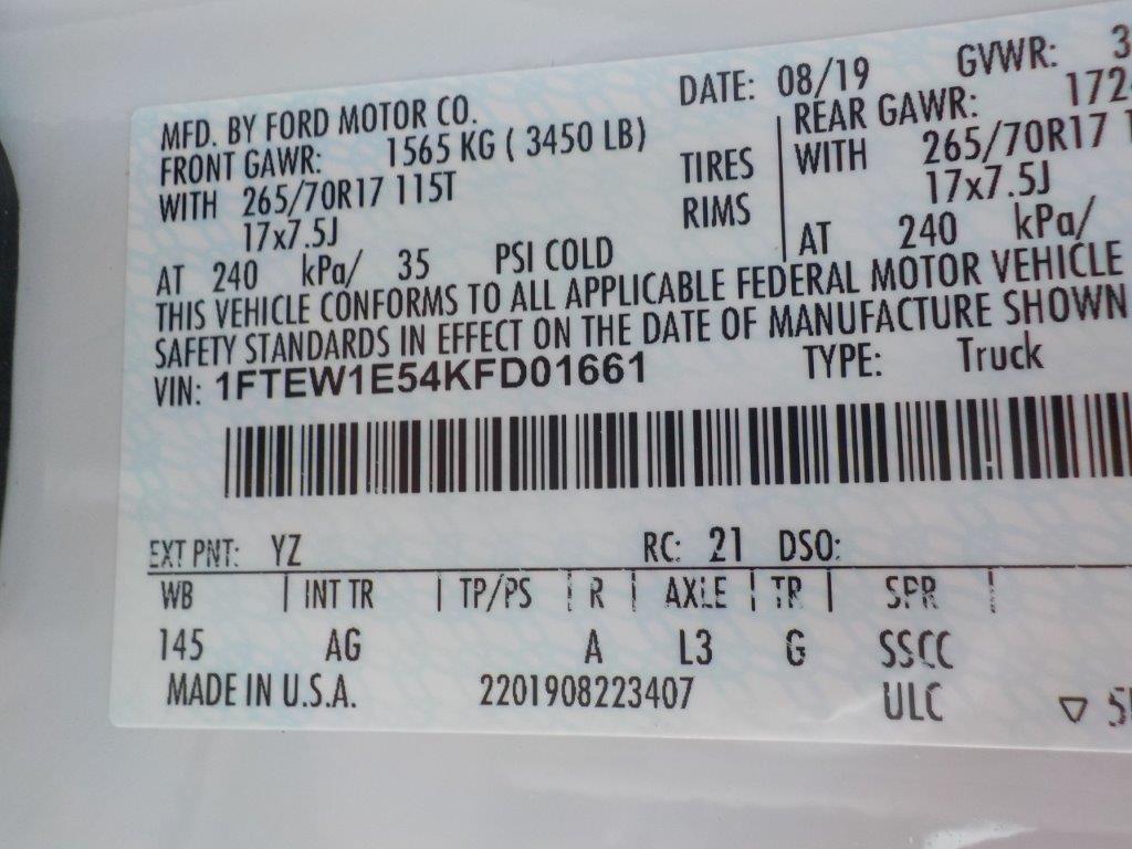 Vehicle ID Number: 1FTEW1E54KFD01661