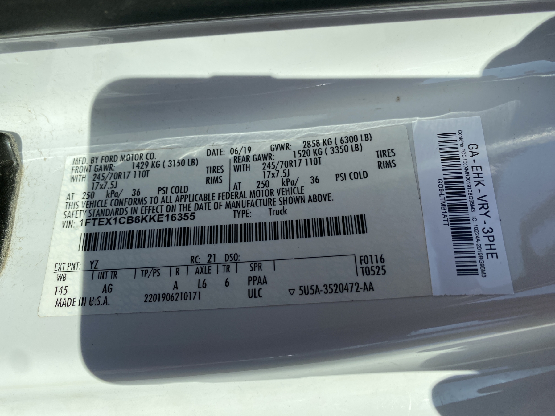 Vehicle ID Number: 1FTEX1CB6KKE16355