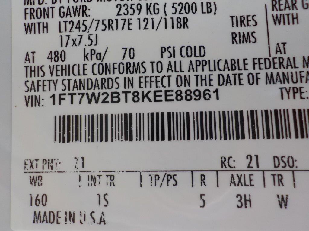 Vehicle ID Number: 1FT7W2BT8KEE88961