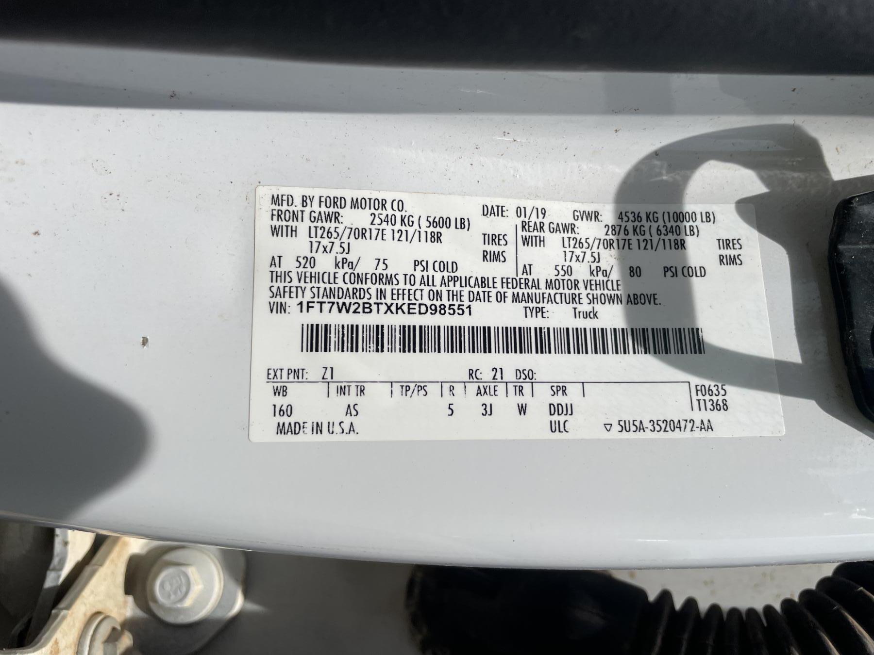 Vehicle ID Number: 1FT7W2BTXKED98551