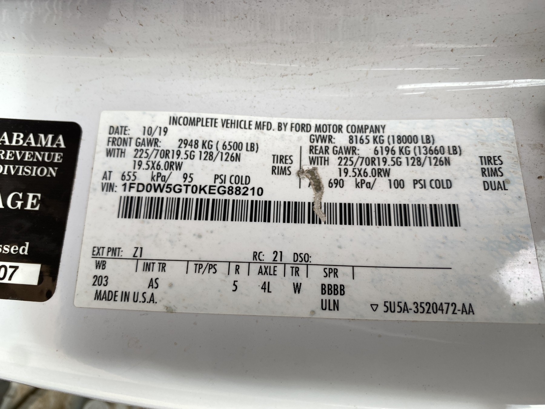 Vehicle ID Number: 1FD0W5GT0KEG88210