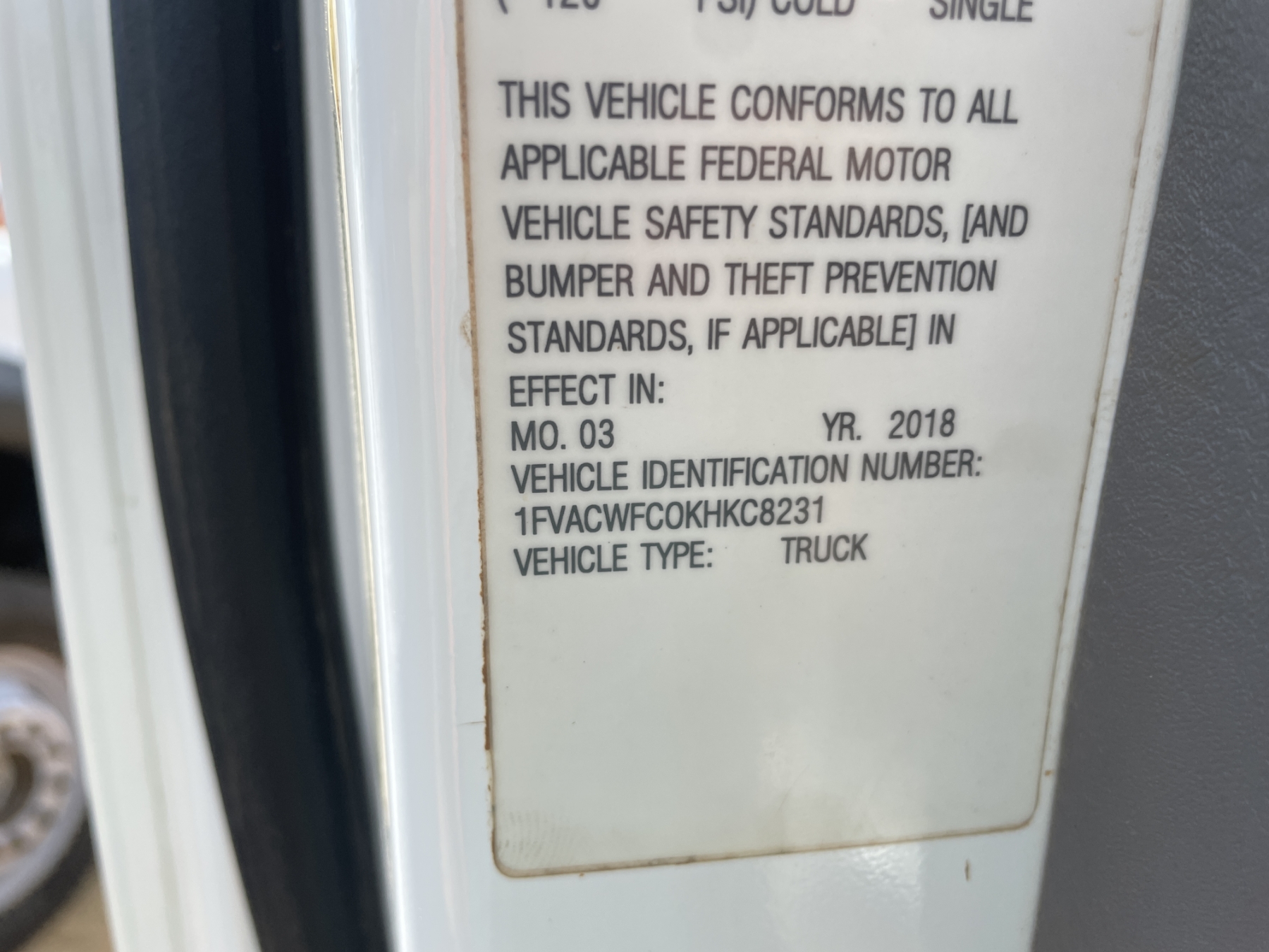 Vehicle ID Number: 1FVACWFC0KHKC8231
