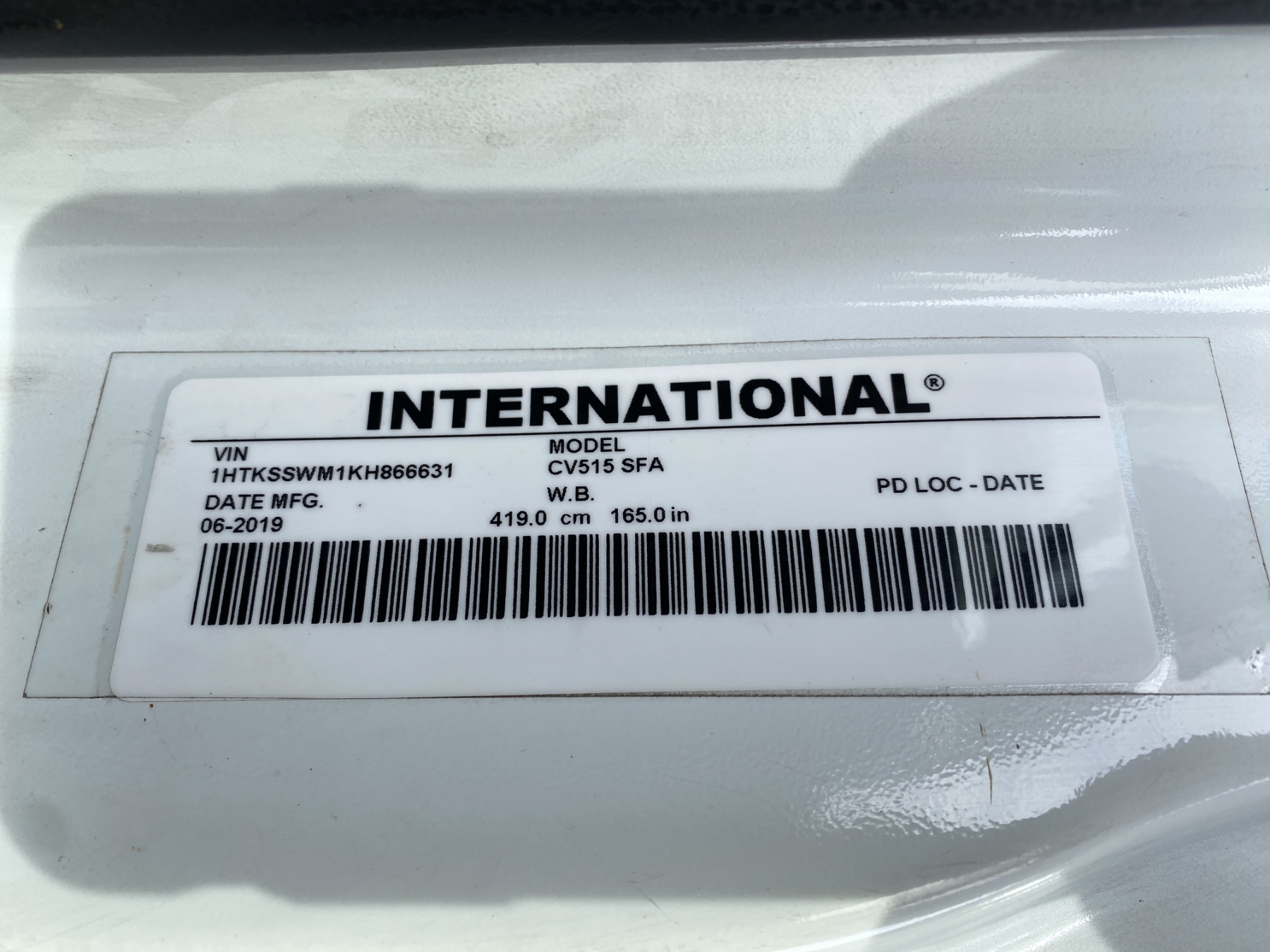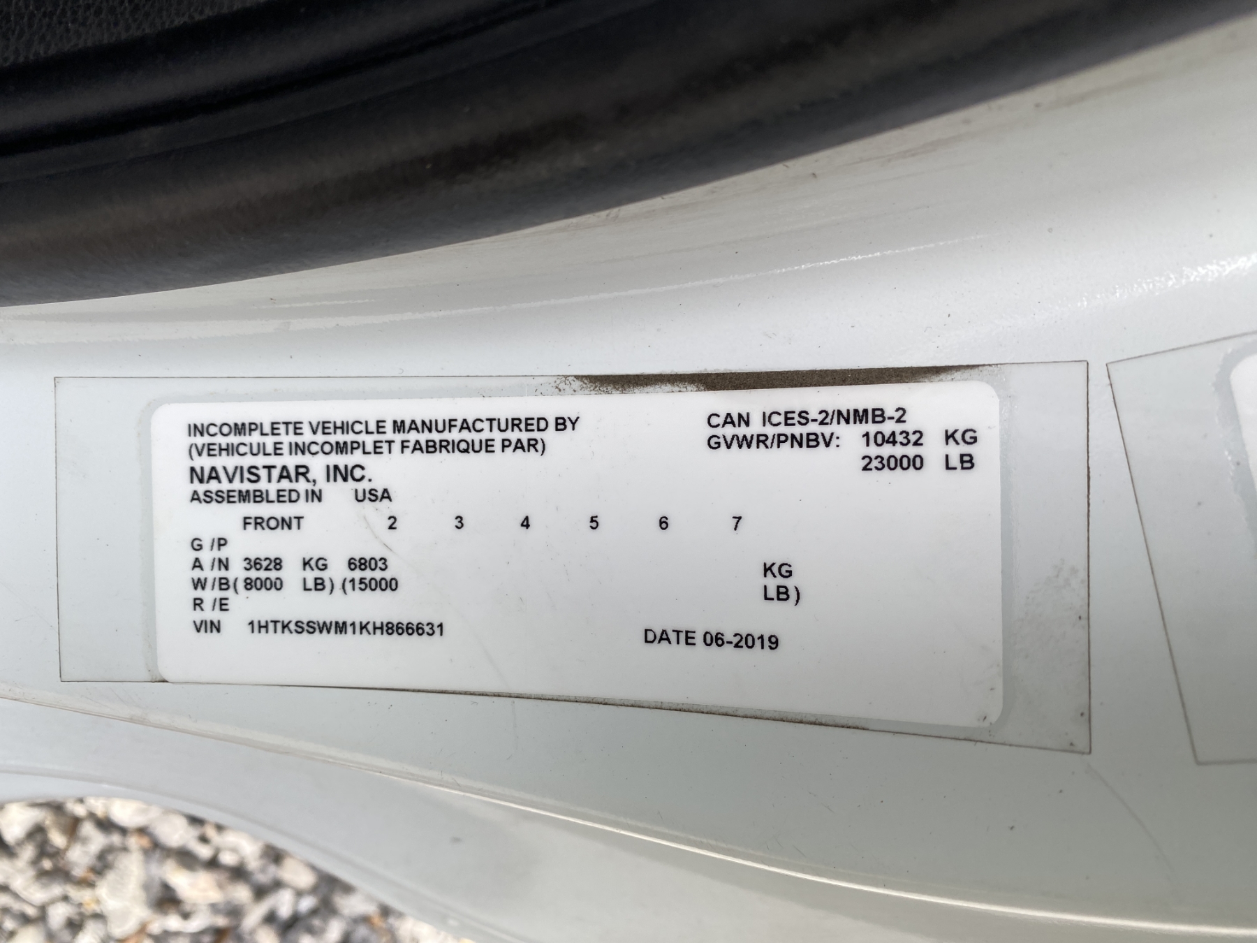 Vehicle ID Number: 1HTKSSWM1KH866631