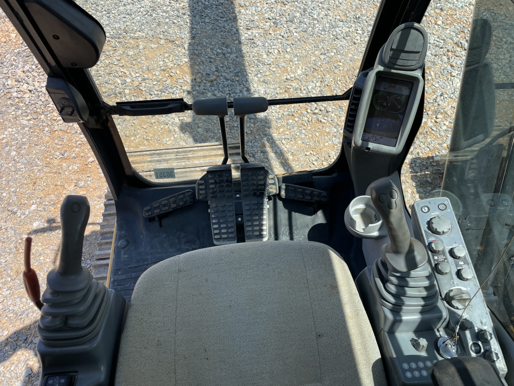 9' 6" stick, 42" bucket, hyd thumb, aux hyd, cab, A/C