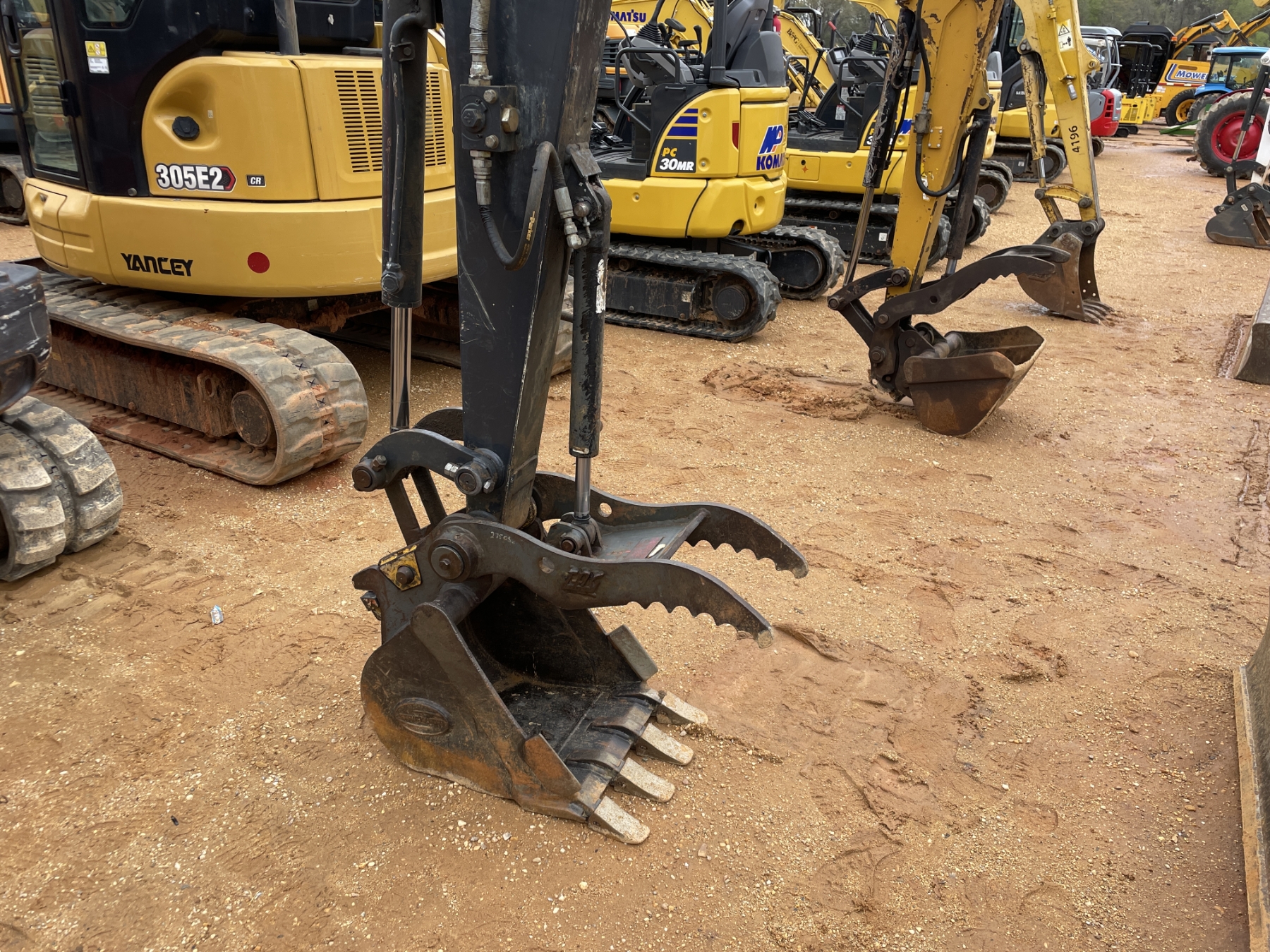 5' 8" stick, 18" bucket, coupler, hyd thumb, aux hyd, blade, canopy